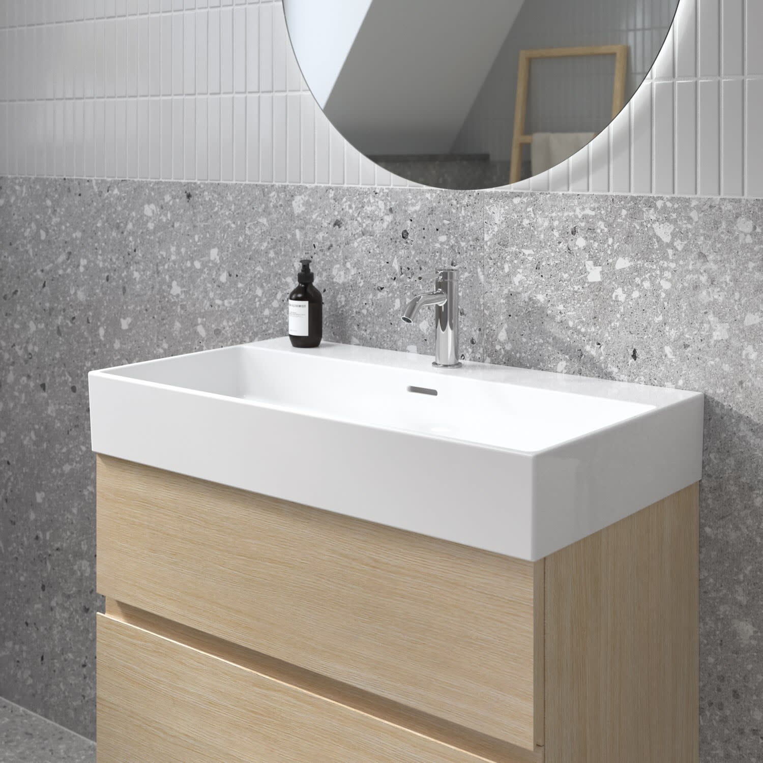 Der Lastani Waschtisch von Ideal Standard überzeugt durch sein klares, eckiges Design und schafft so eine moderne, offene Atmosphäre in jedem Badezimmer. Mit seiner großzügigen Breite von 81,5 cm bietet der Waschtisch viel Raum für Ihre tägliche Pflegeroutine. Das zentrale Hahnloch ermöglicht individuelle Gestaltungsmöglichkeiten, während der geschlitzte Überlauf für ein elegantes Detail sorgt. Gefertigt aus hochwertigem Feinfeuerton überzeugt der Waschtisch nicht nur durch seine zeitlose Ästhetik, sondern auch durch seine langlebige Qualität.