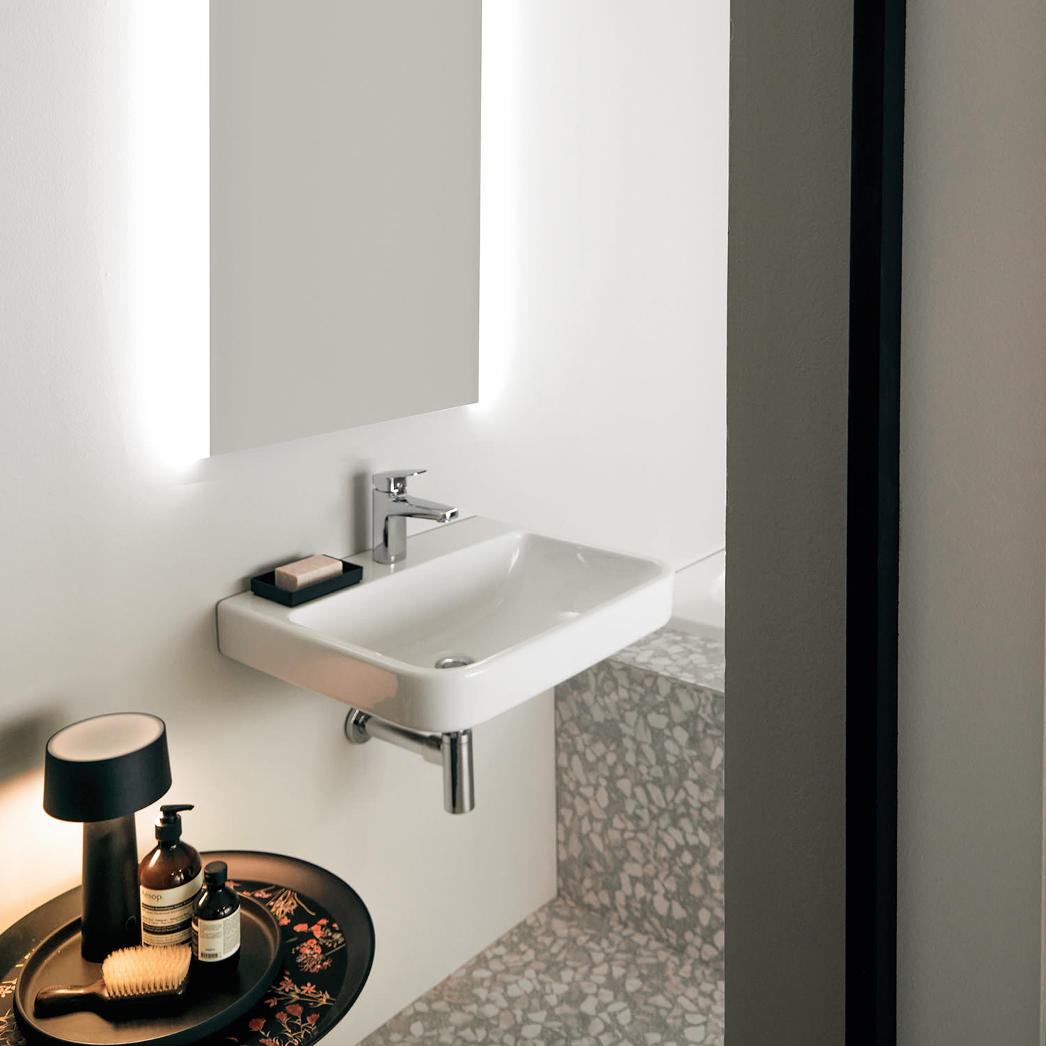 Ideal Standard l.life B orientiert sich an der bereits 2021 entwickelten Kollektion i.life A. Formal ist sie jedoch deutlich eckiger und kubischer. Das Sortiment der Waschtische umfasst auch Varianten ohne Hahnloch und Überlauf. Ideal Standard i.life wurde in Zusammenarbeit mit dem italienischen Designstudio Palomba Serafini Associati entworfen.