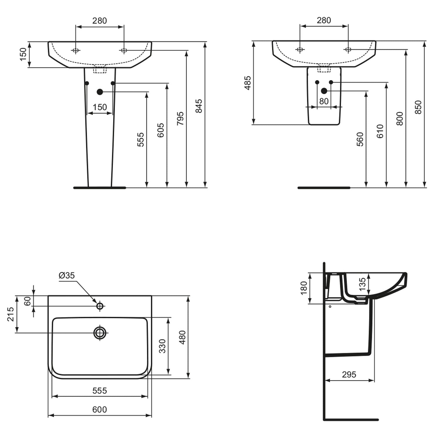Ideal Standard i.life B Waschtisch 60 cm, 1 Hahnloch, ohne Überlauf