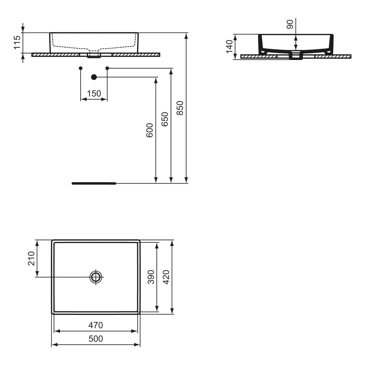 Ideal Standard i.life B Aufsatzwaschtisch 50 cm, ohne Hahnloch, ohne Überlauf