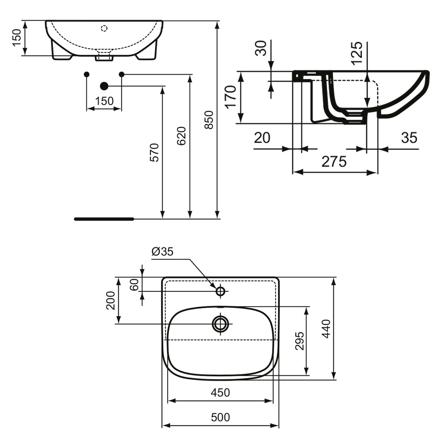 Ideal Standard i.life A Halbeinbauwaschtisch, 1 Hahnloch, mit Überlauf