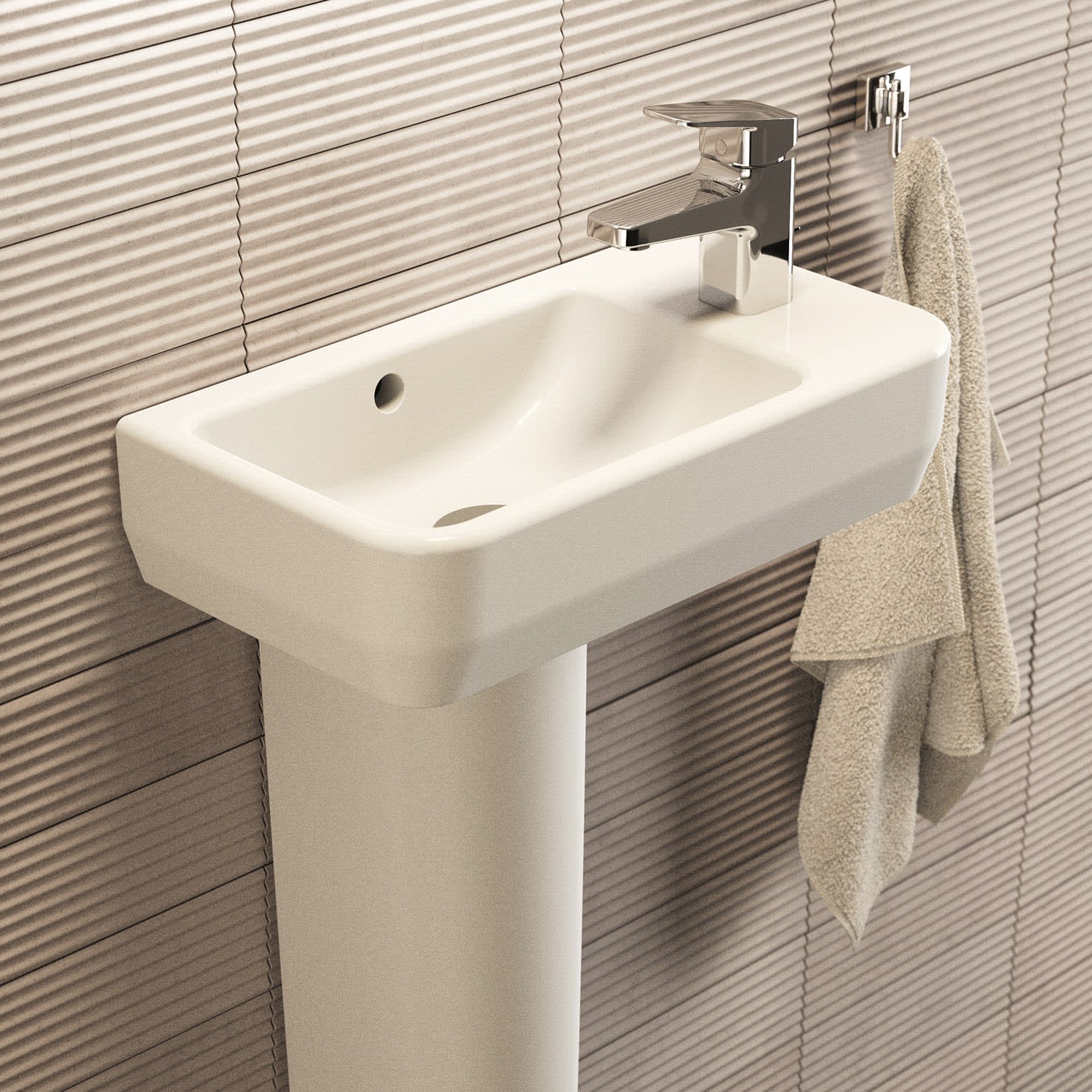 Ideal Standard i.life S Handwaschbecken 45 cm, 1 Hahnloch rechts, mit Überlauf