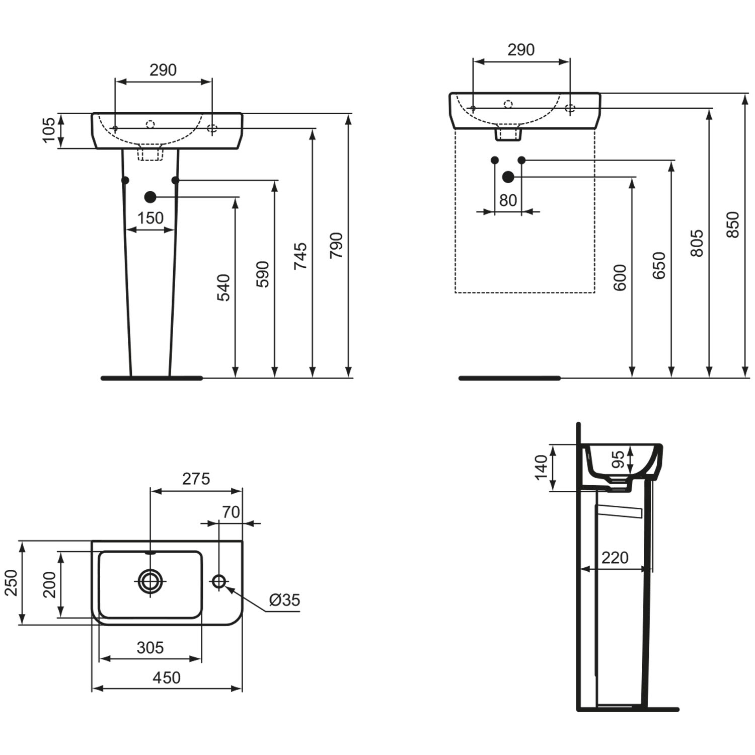- Durchmesser Ablaufloch 4,5 cm