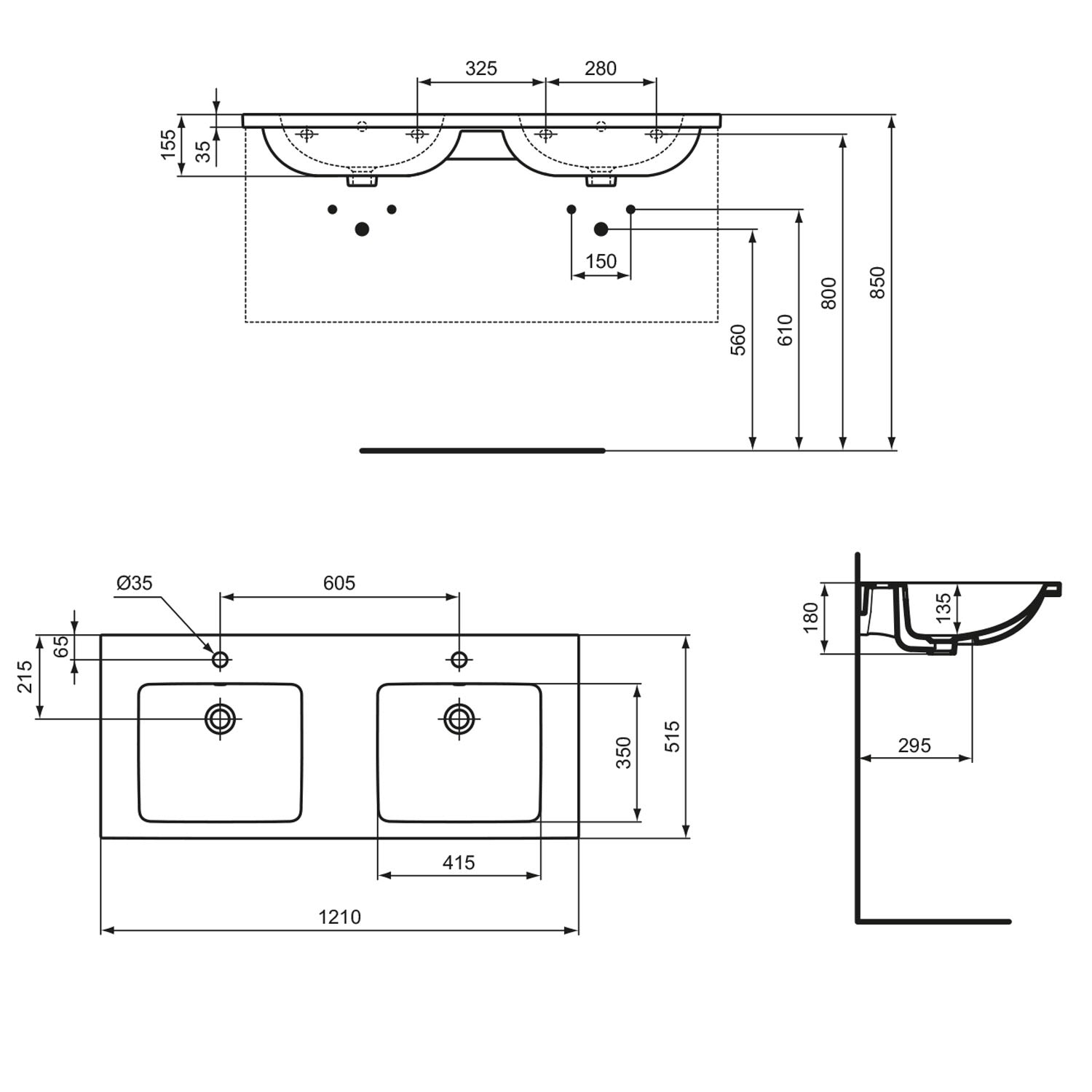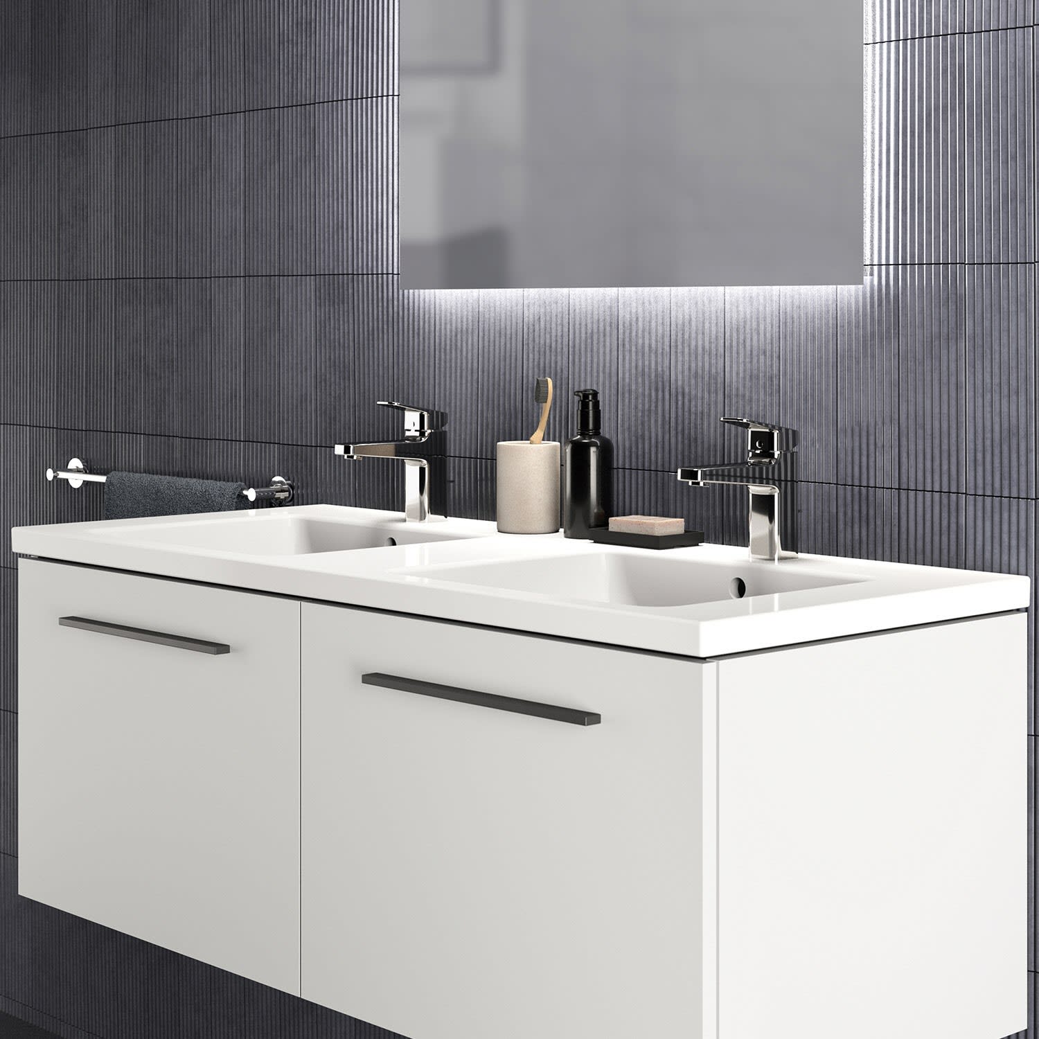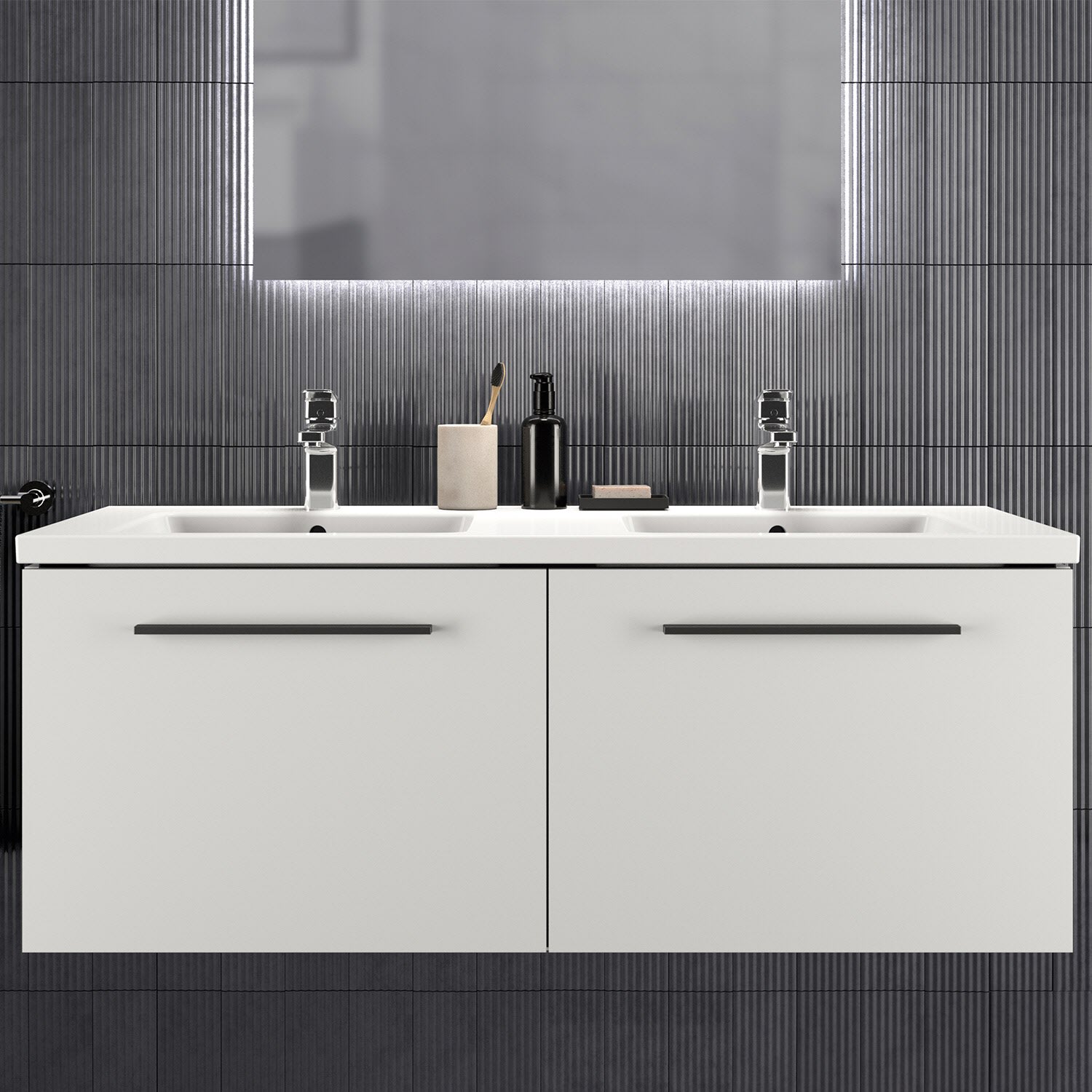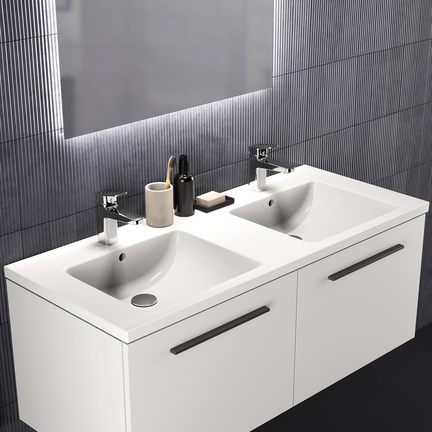 Ideal Standard i.life B Möbel-Doppelwaschtisch 121 cm, je 1 Hahnloch, mit Überlauf