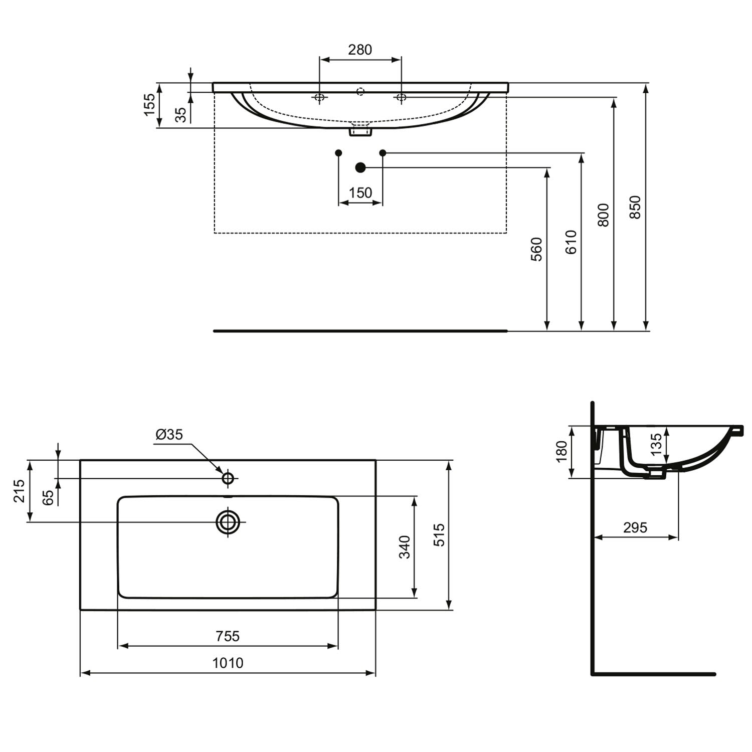 Ideal Standard i.life B Möbelwaschtisch 101 cm, 1 Hahnloch, mit Überlauf