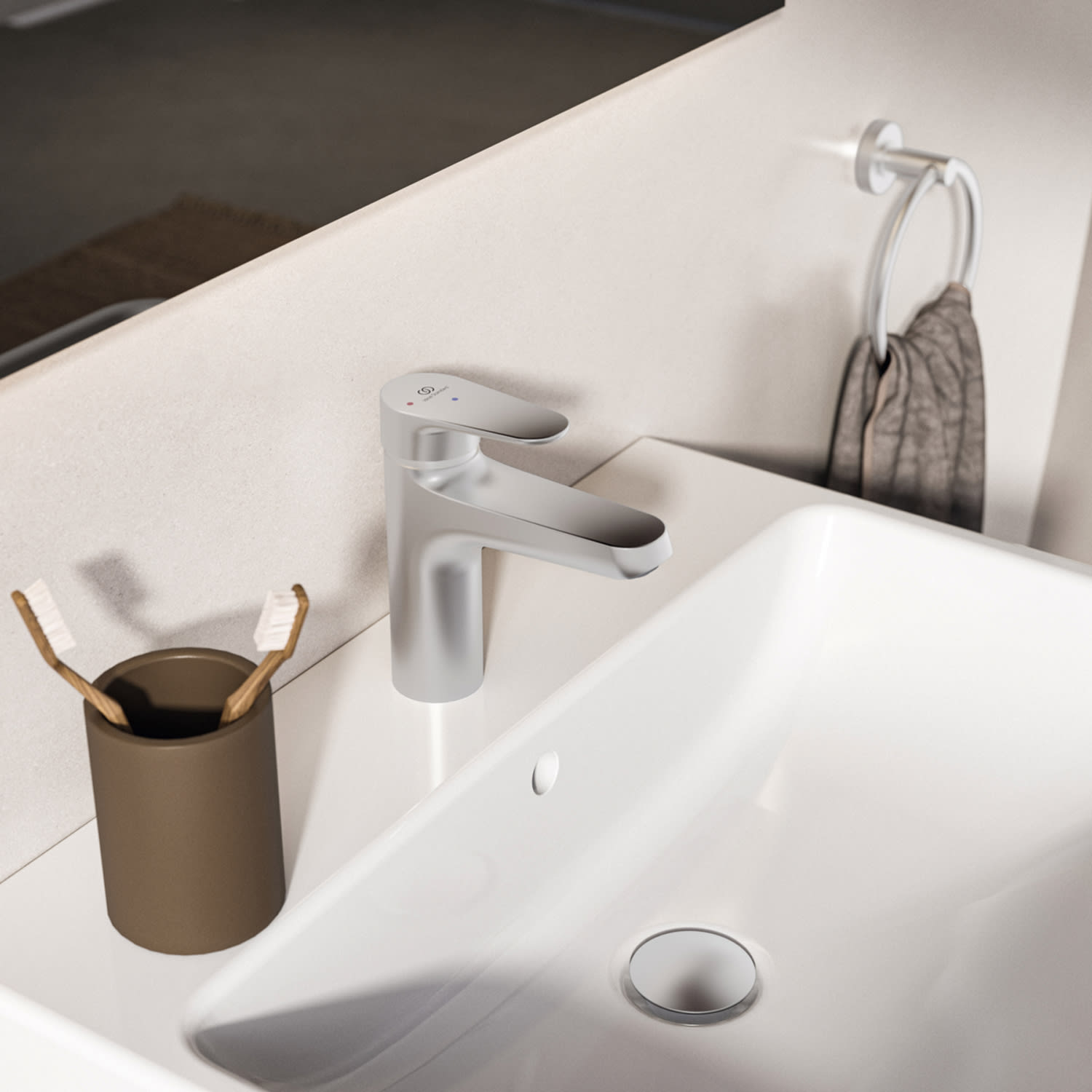 Der Waschtisch ist Teil der Ideal Standard i.life B Kollektion, die eine umfassende Auswahl an Badezimmerlösungen bietet. Entdecken Sie die Schönheit zeitlosen Designs und schaffen Sie eine Wohlfühloase in Ihrem Badezimmer.