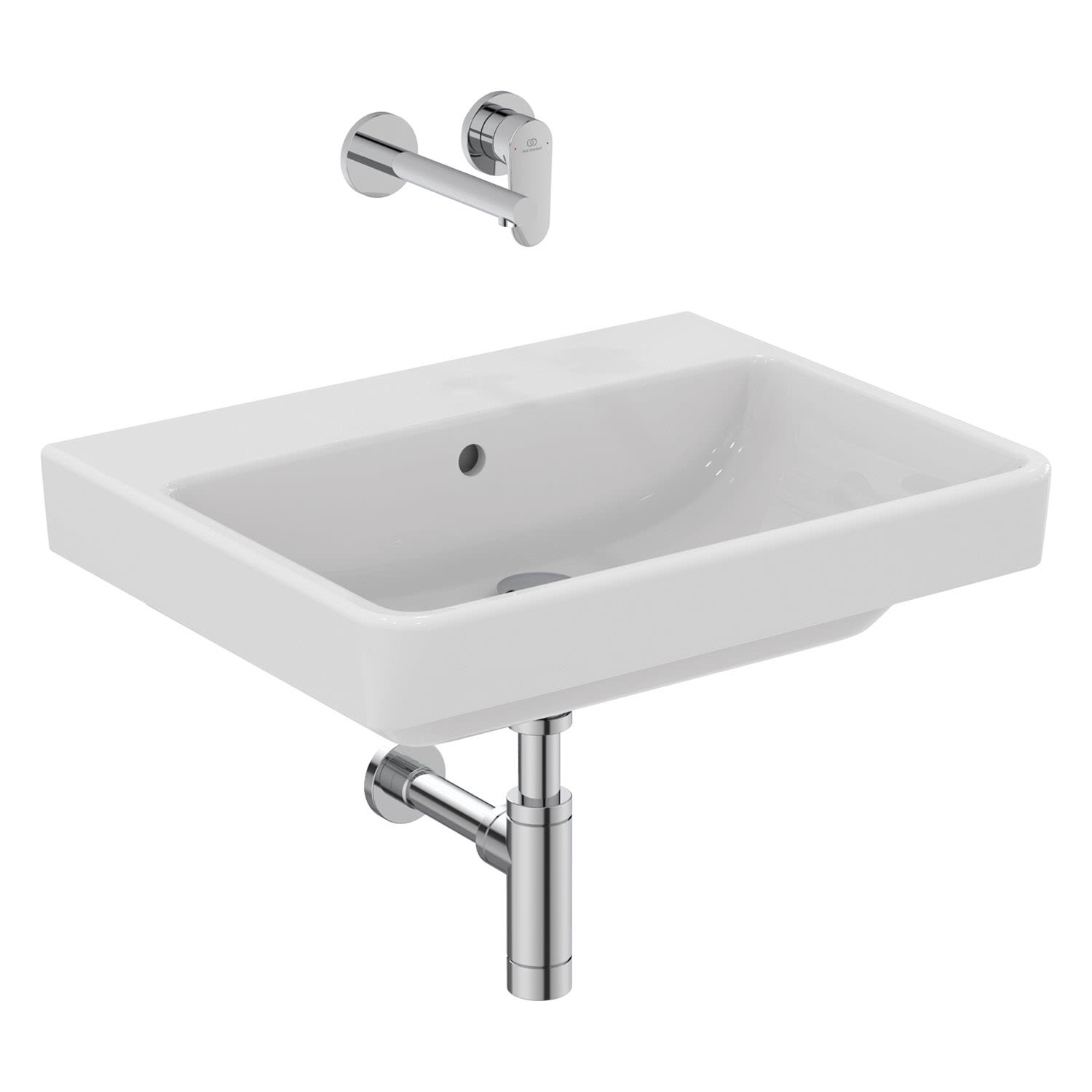 Der i.life B Waschtisch von Ideal Standard ist eine stilvolle Wahl für Ihr Badezimmer. Die Serie zeichnet sich durch ein zeitgemäßes Design aus, das schlicht und elegant ist, sich harmonisch in verschiedenste Einrichtungsstile einfügt und eine Atmosphäre von Ruhe und Eleganz schafft. Genießen Sie die schlichte Eleganz des weißen Waschtischs, der 60 cm breit ist und über einen Überlauf verfügt. Wand-Armaturen sind die perfekte Ergänzung für einen Waschtisch ohne Hahnloch. Gefertigt aus hochwertigem Feinfeuerton überzeugt der Waschtisch nicht nur durch seine zeitlose Ästhetik, sondern auch durch seine langlebige Qualität. Dieser Waschtisch ist unterbaufähig, wodurch eine nahtlose, elegante und moderne Optik entsteht.