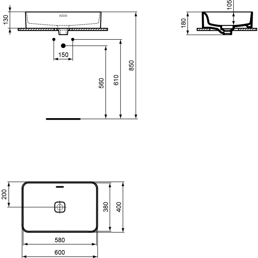Ideal Standard Strada II Aufsatzwaschtisch 60 cm ohne Hahnloch