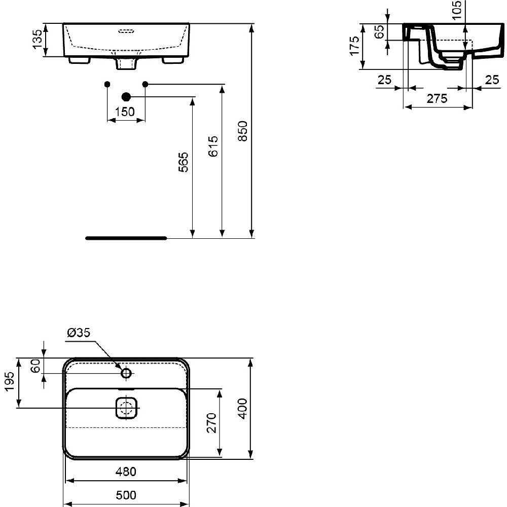 Ideal Standard Strada II Halbeinbauwaschtisch 50 cm