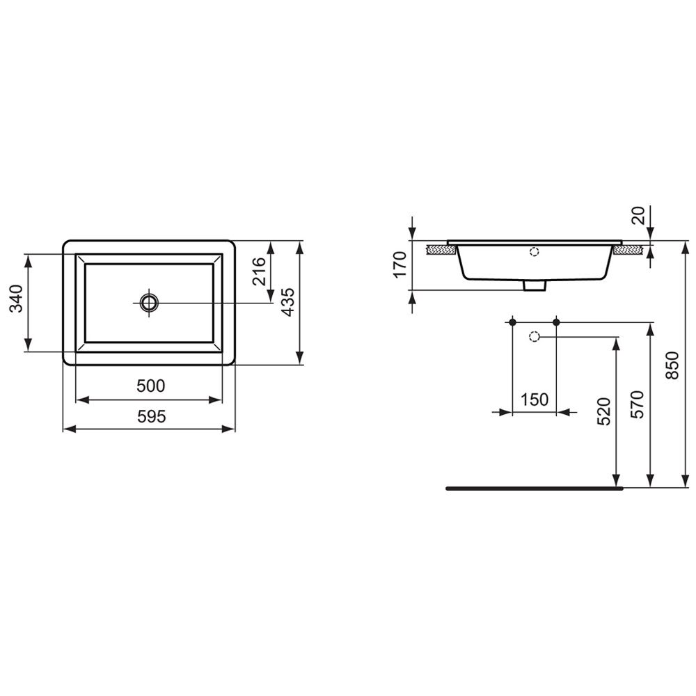 Ideal Standard Strada Einsatzwaschtisch 59,5 cm