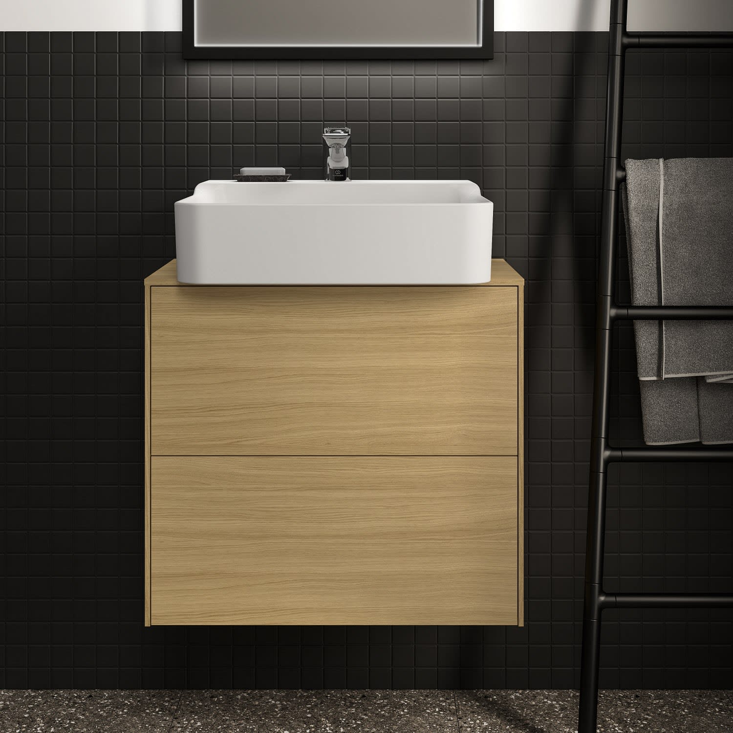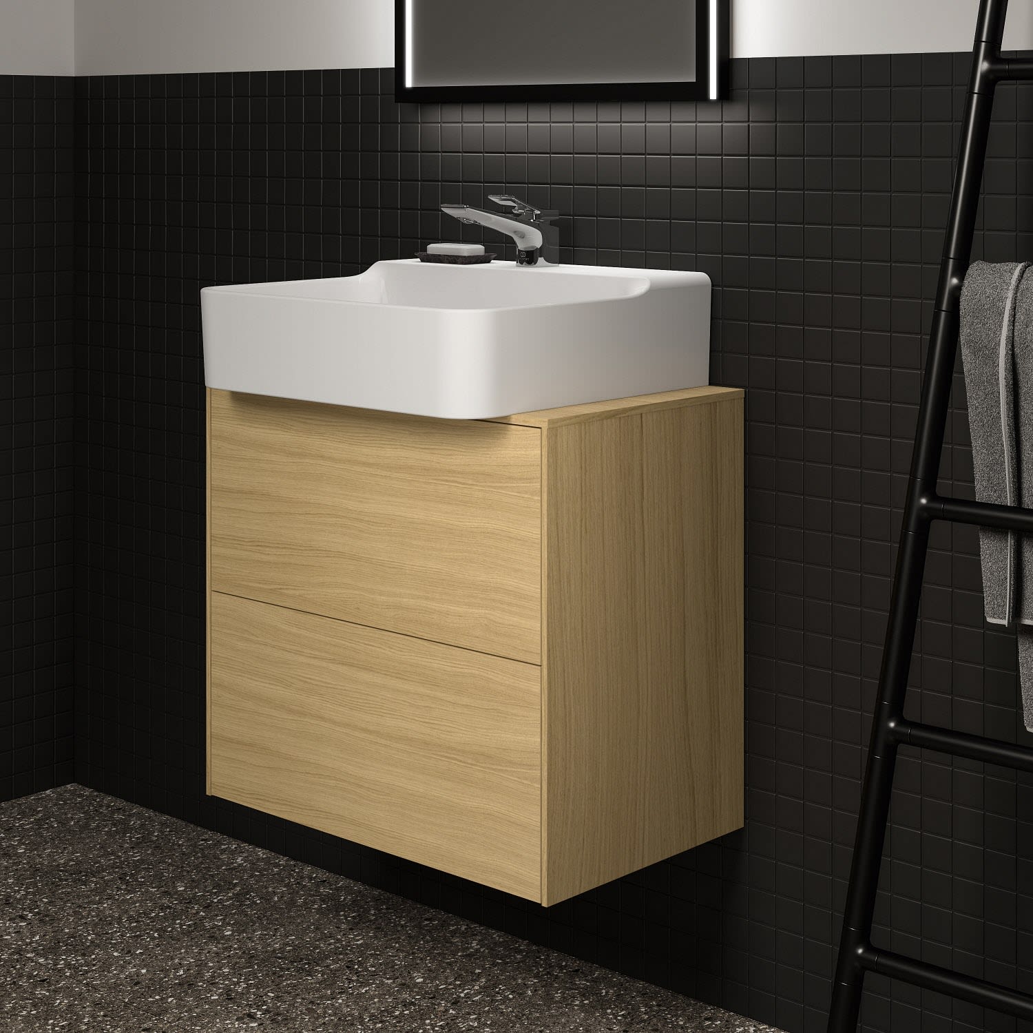 Ideal Standard Badspiegel Conca quadratisch 60 cm mit Beleuchtung und schwarzem Rahmen