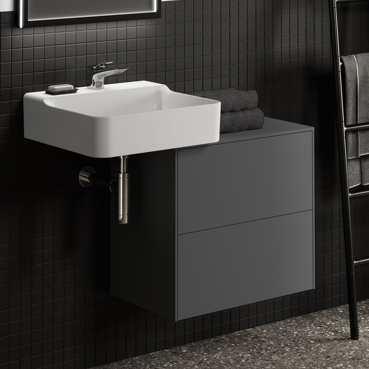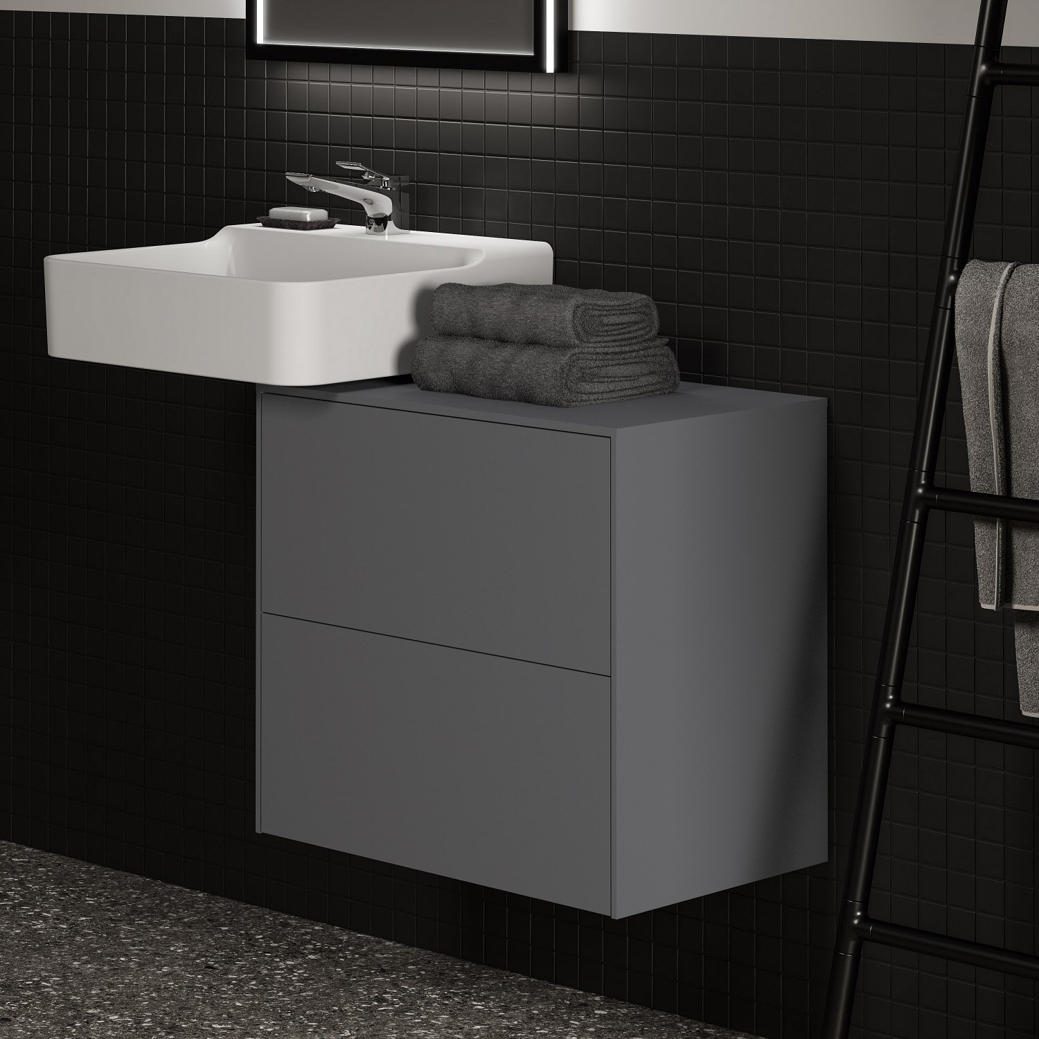Ideal Standard Badspiegel Conca quadratisch 60 cm mit Beleuchtung und schwarzem Rahmen