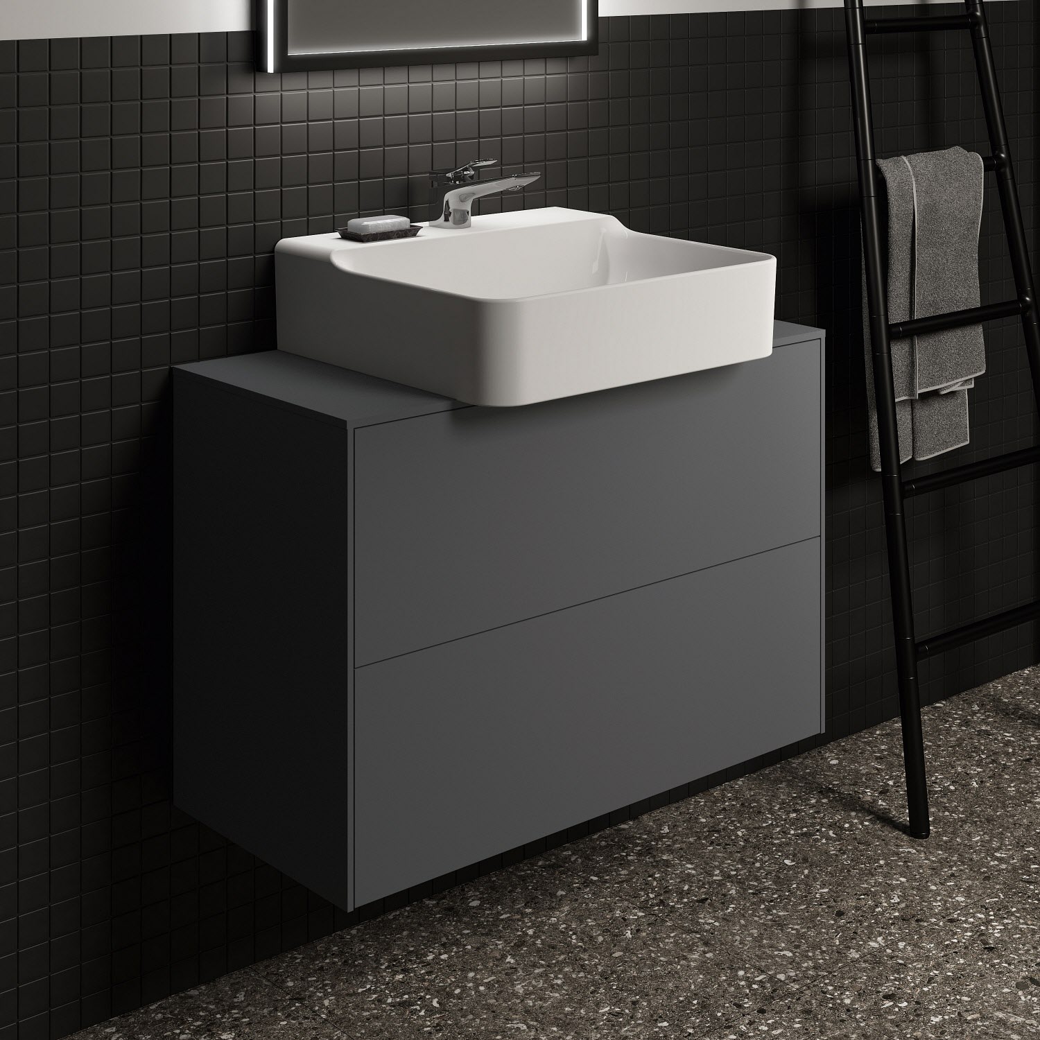 Ideal Standard Badspiegel Conca quadratisch 60 cm mit Beleuchtung und schwarzem Rahmen