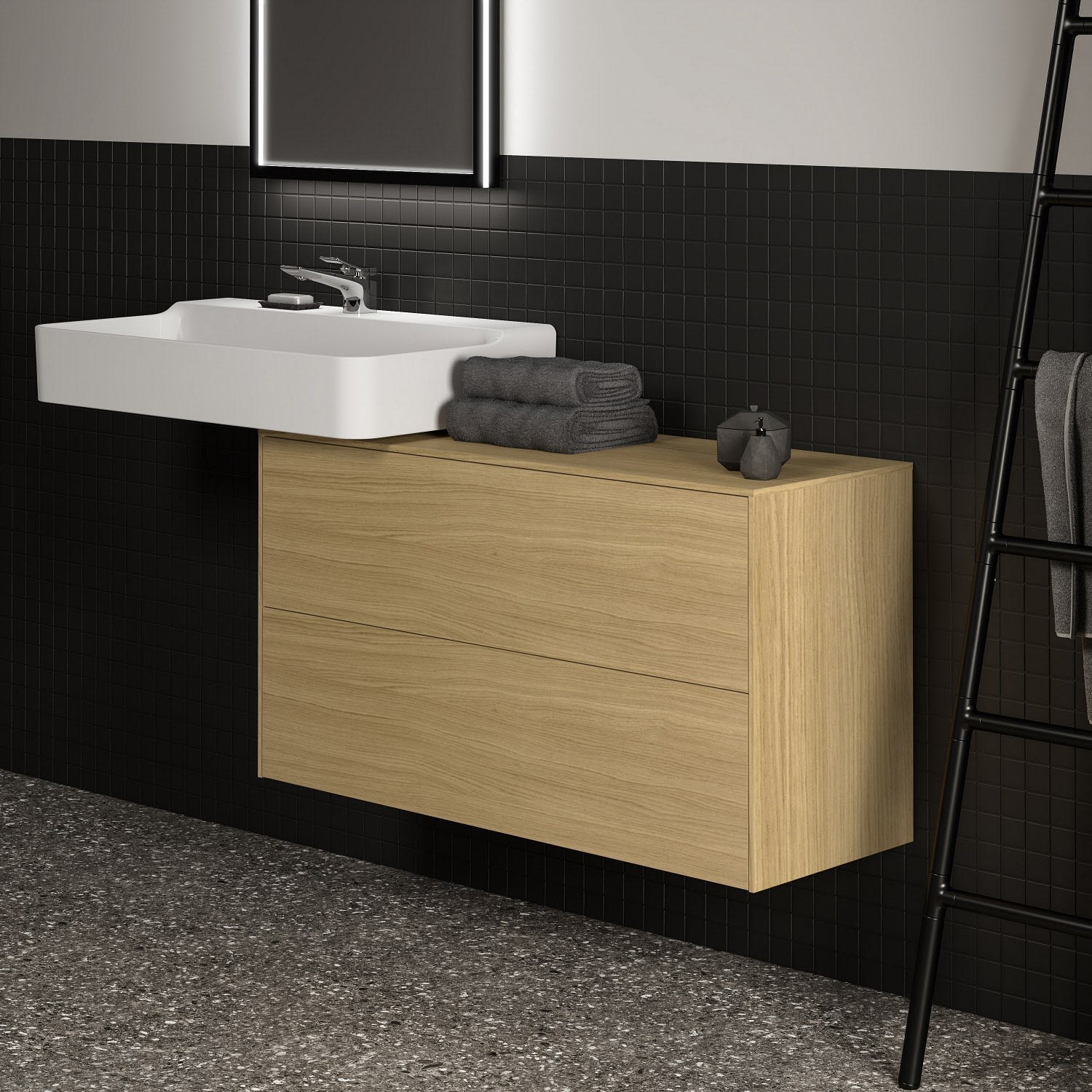 Ideal Standard Badspiegel Conca quadratisch 60 cm mit Beleuchtung und schwarzem Rahmen