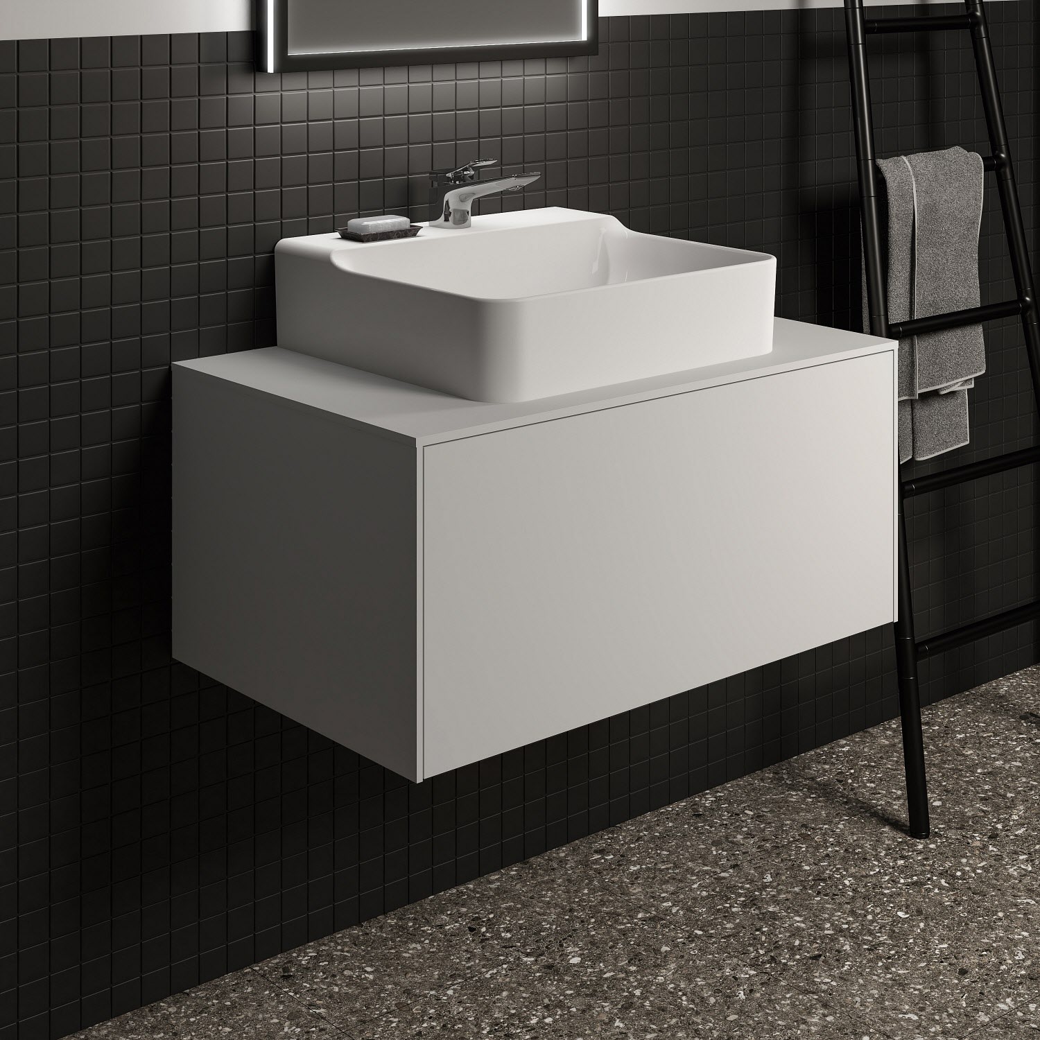 Ideal Standard Badspiegel Conca quadratisch 60 cm mit Beleuchtung und schwarzem Rahmen
