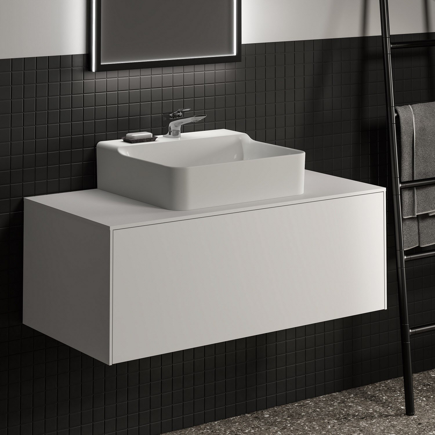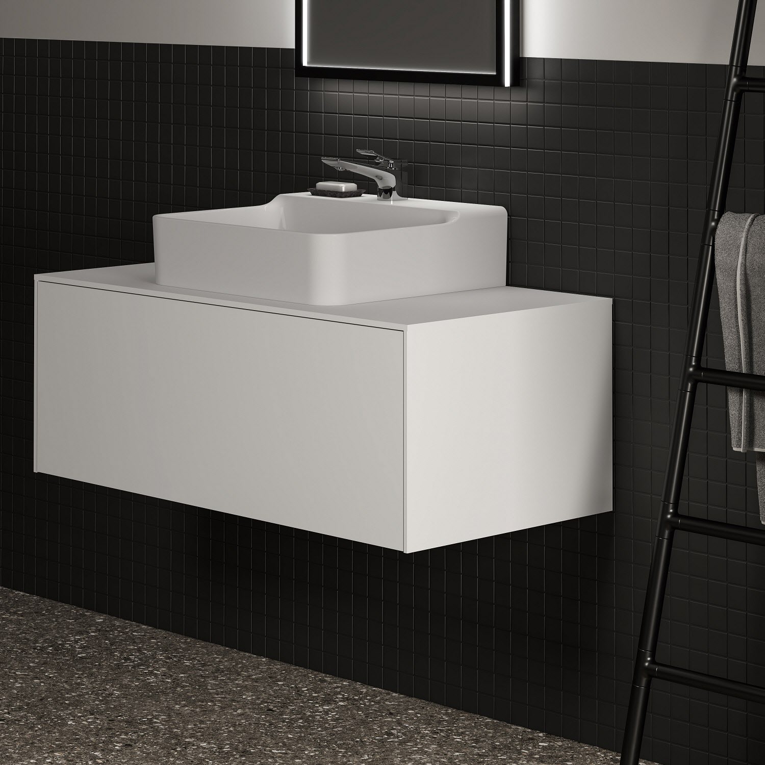 Ideal Standard Badspiegel Conca quadratisch 60 cm mit Beleuchtung und schwarzem Rahmen