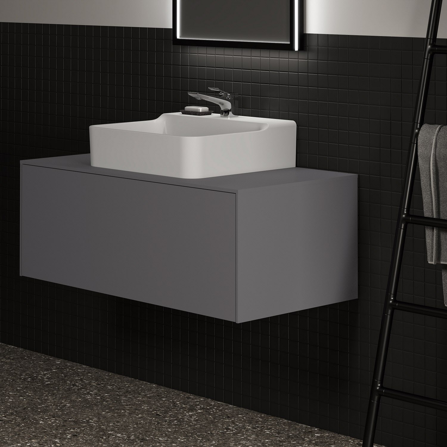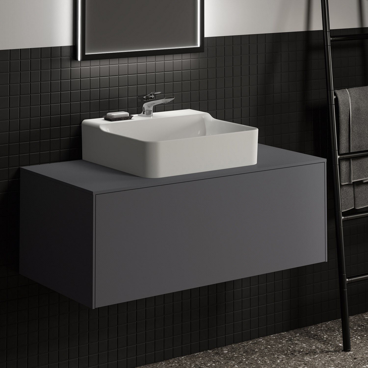 Ideal Standard Badspiegel Conca quadratisch 60 cm mit Beleuchtung und schwarzem Rahmen