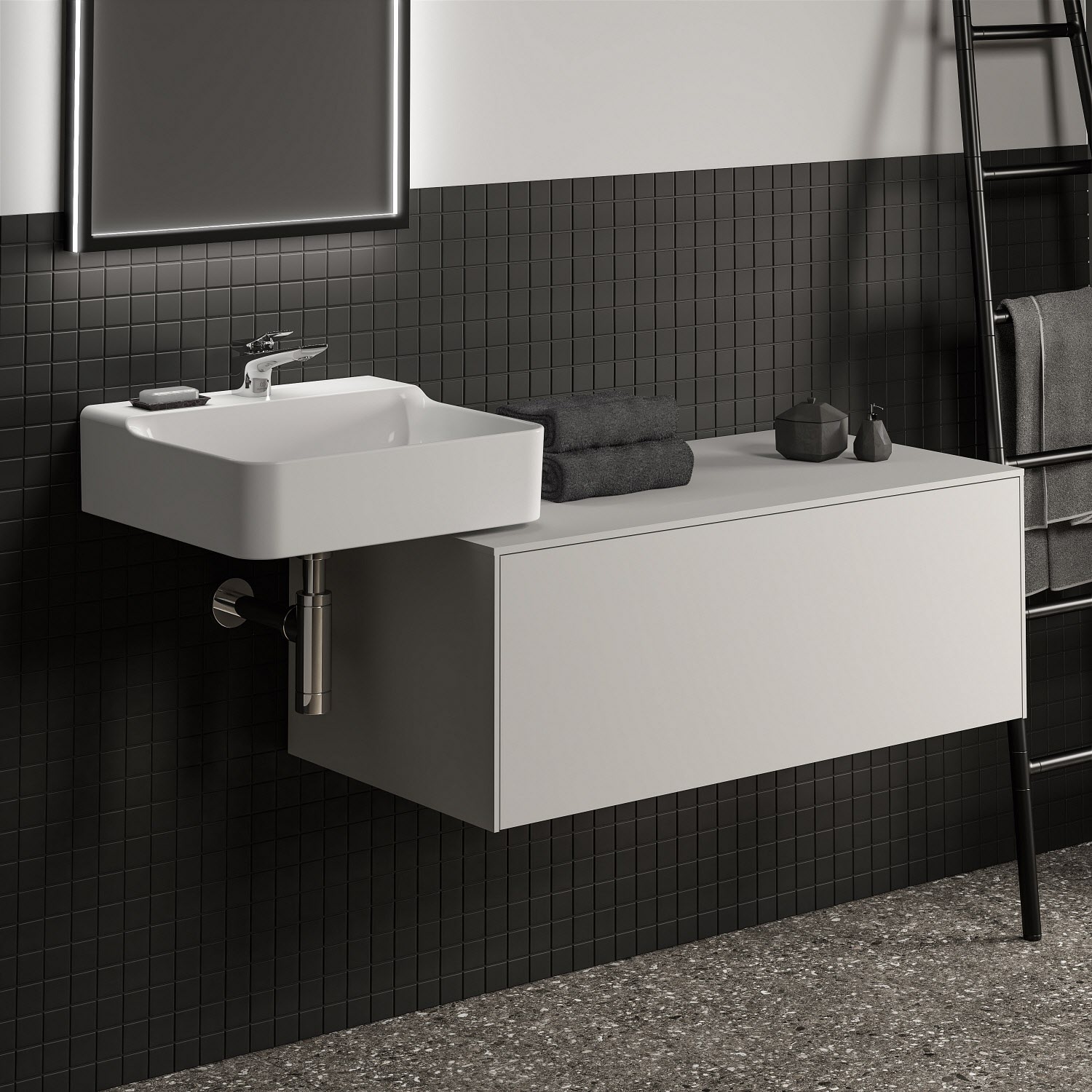 Ideal Standard Badspiegel Conca quadratisch 60 cm mit Beleuchtung und schwarzem Rahmen
