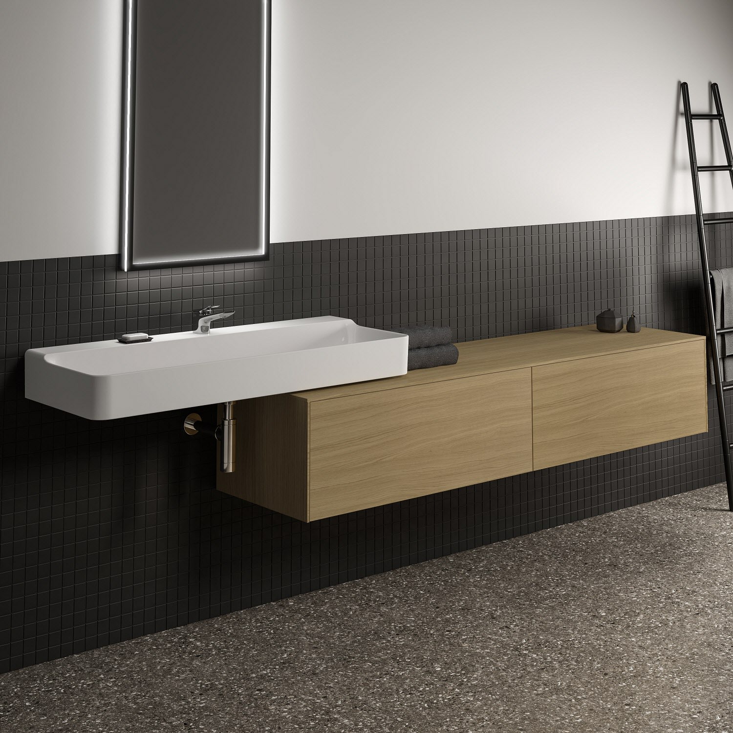 Ideal Standard Conca Waschtischunterschrank 200 cm, ohne Ausschnitt, 2 Auszüge