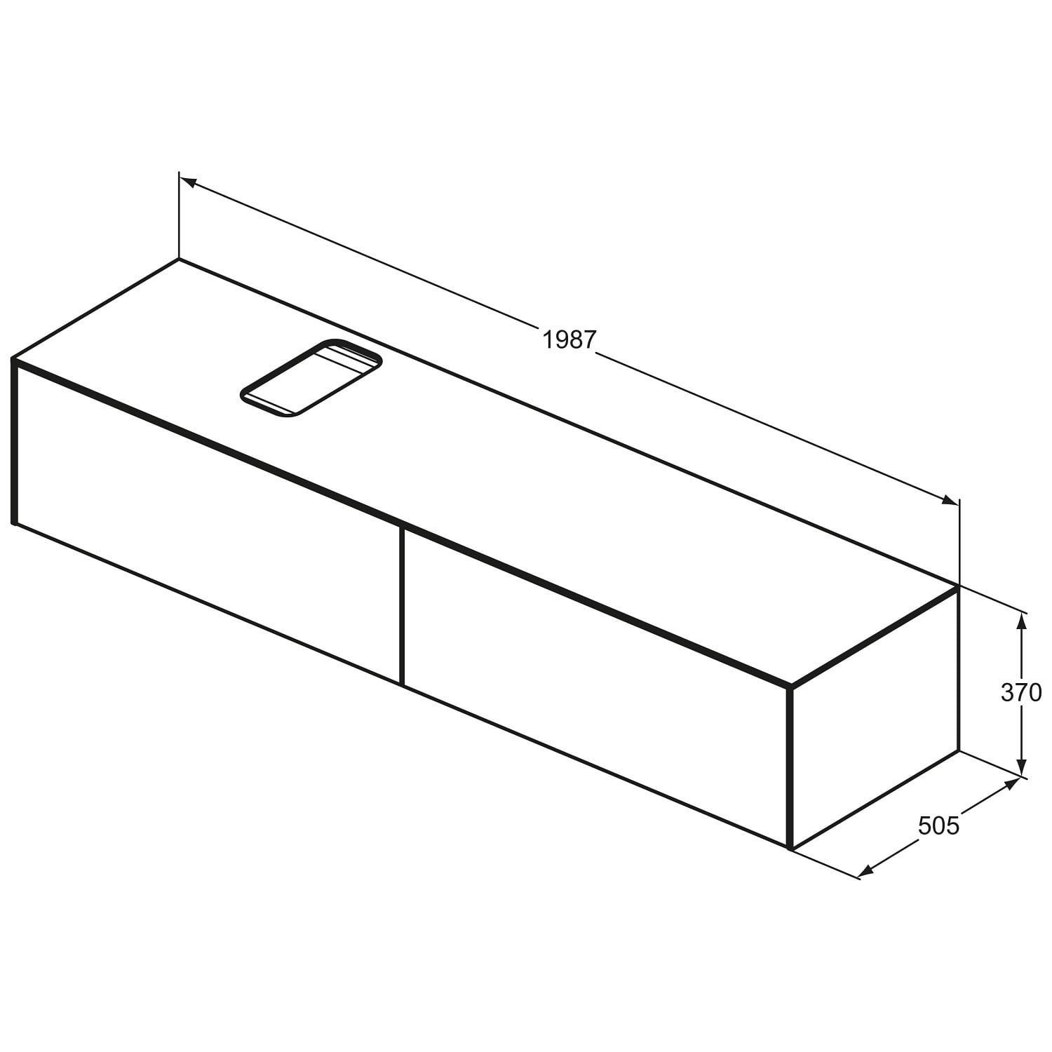 Ideal Standard Conca Waschtischunterschrank 200 cm, mit Ausschnitt wählbar, 2 Auszüge