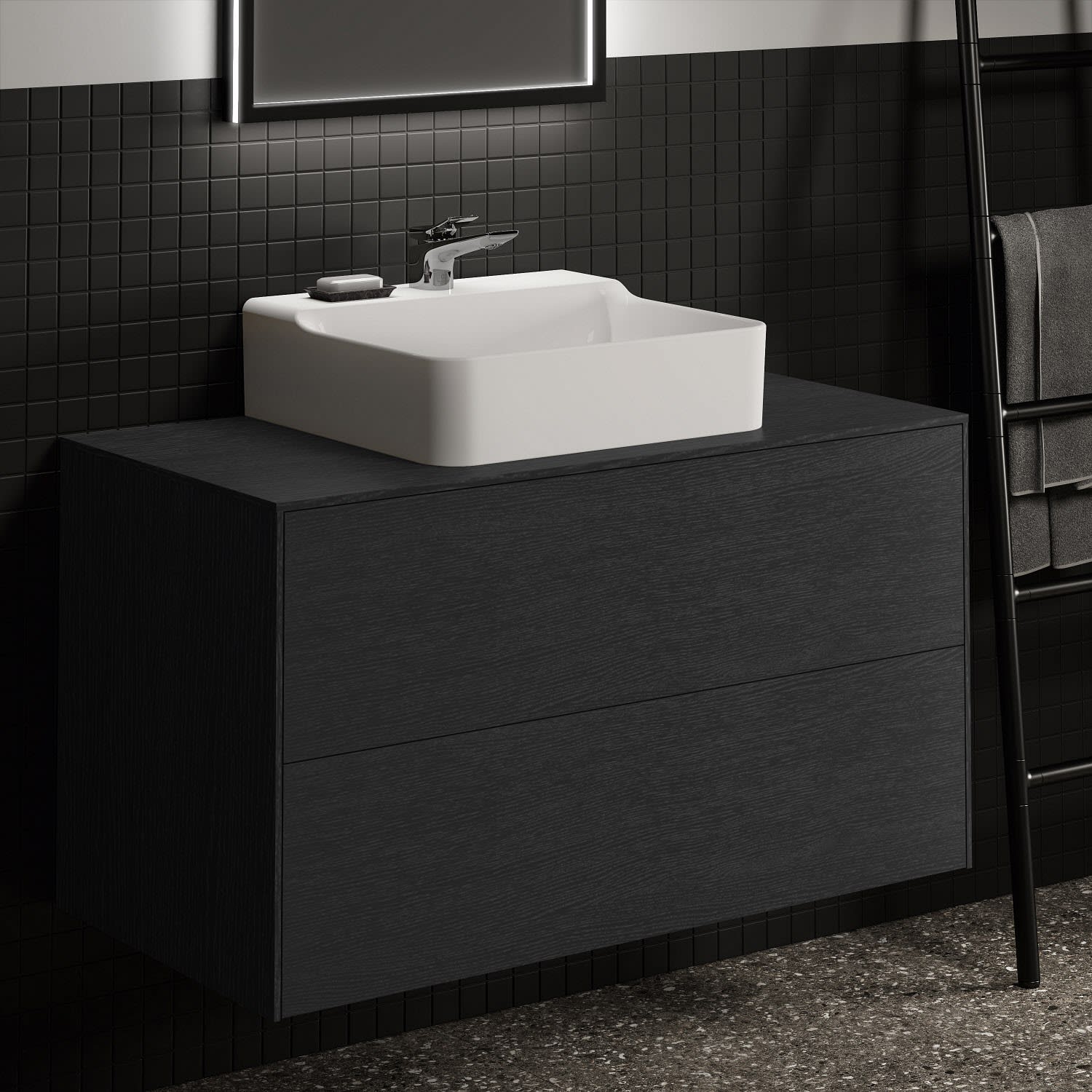 Ideal Standard Badspiegel Conca quadratisch 60 cm mit Beleuchtung und schwarzem Rahmen