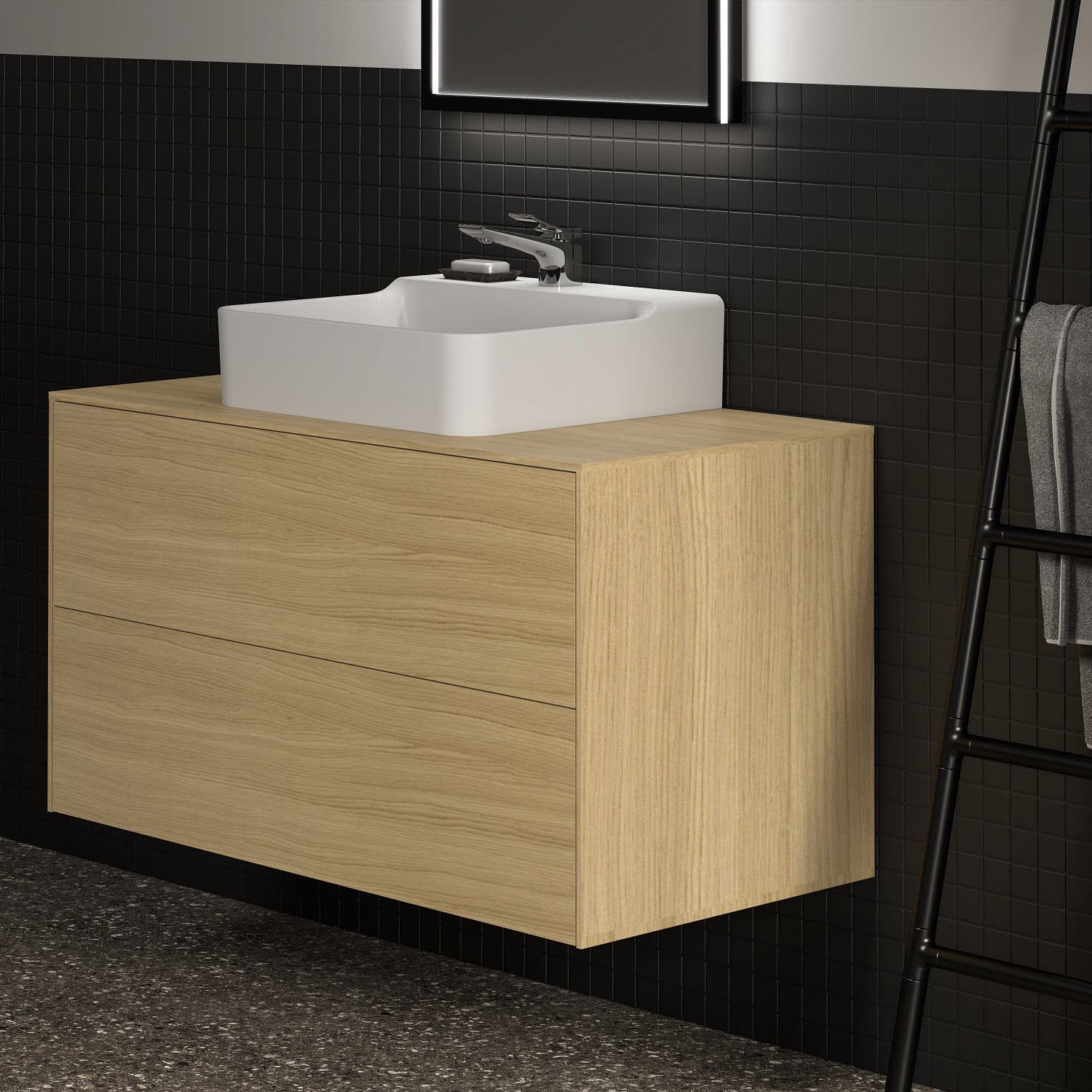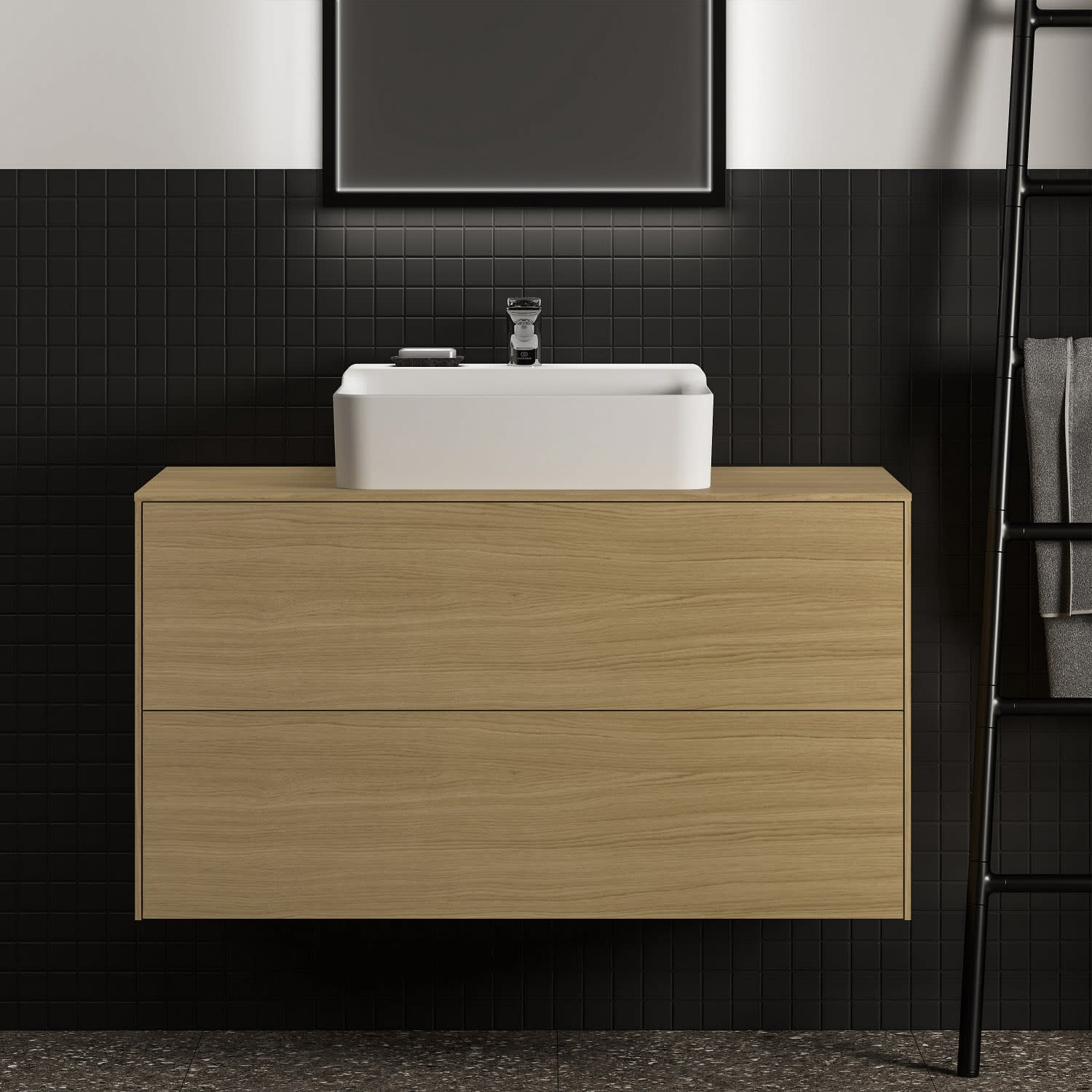 Ideal Standard Badspiegel Conca quadratisch 60 cm mit Beleuchtung und schwarzem Rahmen