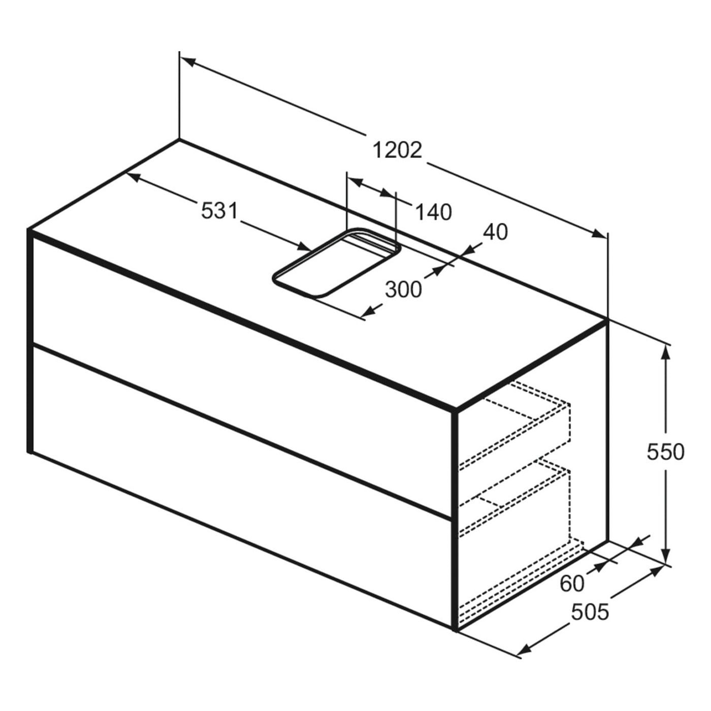 Ideal Standard Conca Waschtischunterschrank 120 cm, mit Ausschnitt, 2 Auszüge