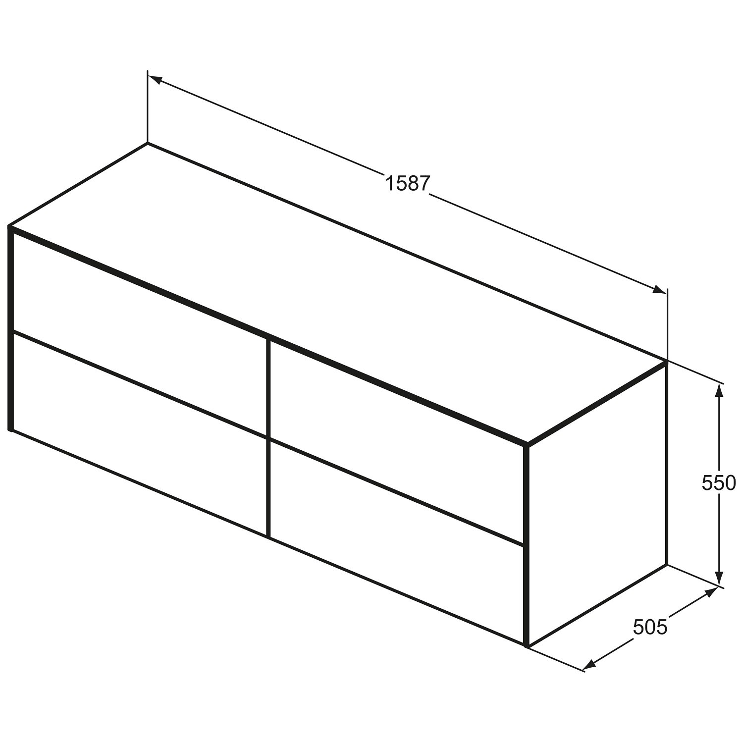 Ideal Standard Conca Waschtischunterschrank 160 cm, ohne Ausschnitt, 4 Auszüge