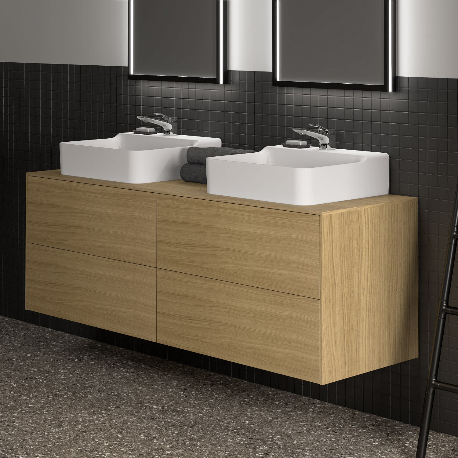Ideal Standard Conca Waschtischunterschrank 160 cm, mit Ausschnitt wählbar, 4 Auszüge