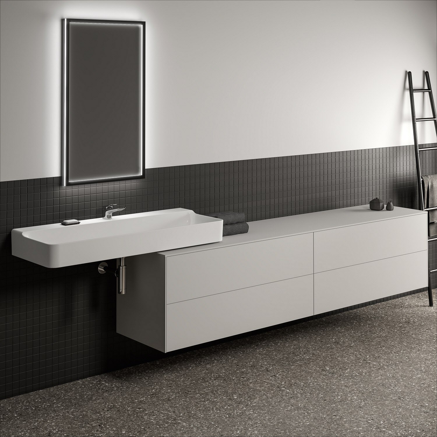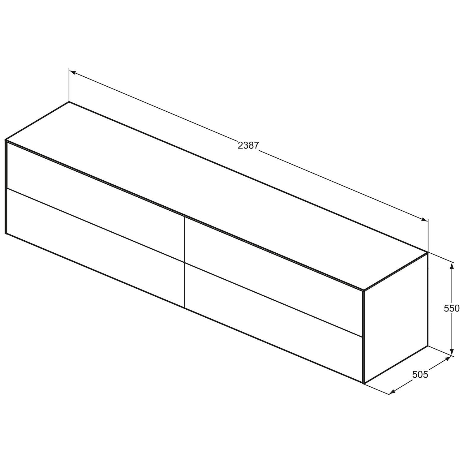 Ideal Standard Conca Waschtischunterschrank 240 cm, ohne Ausschnitt, 4 Auszüge