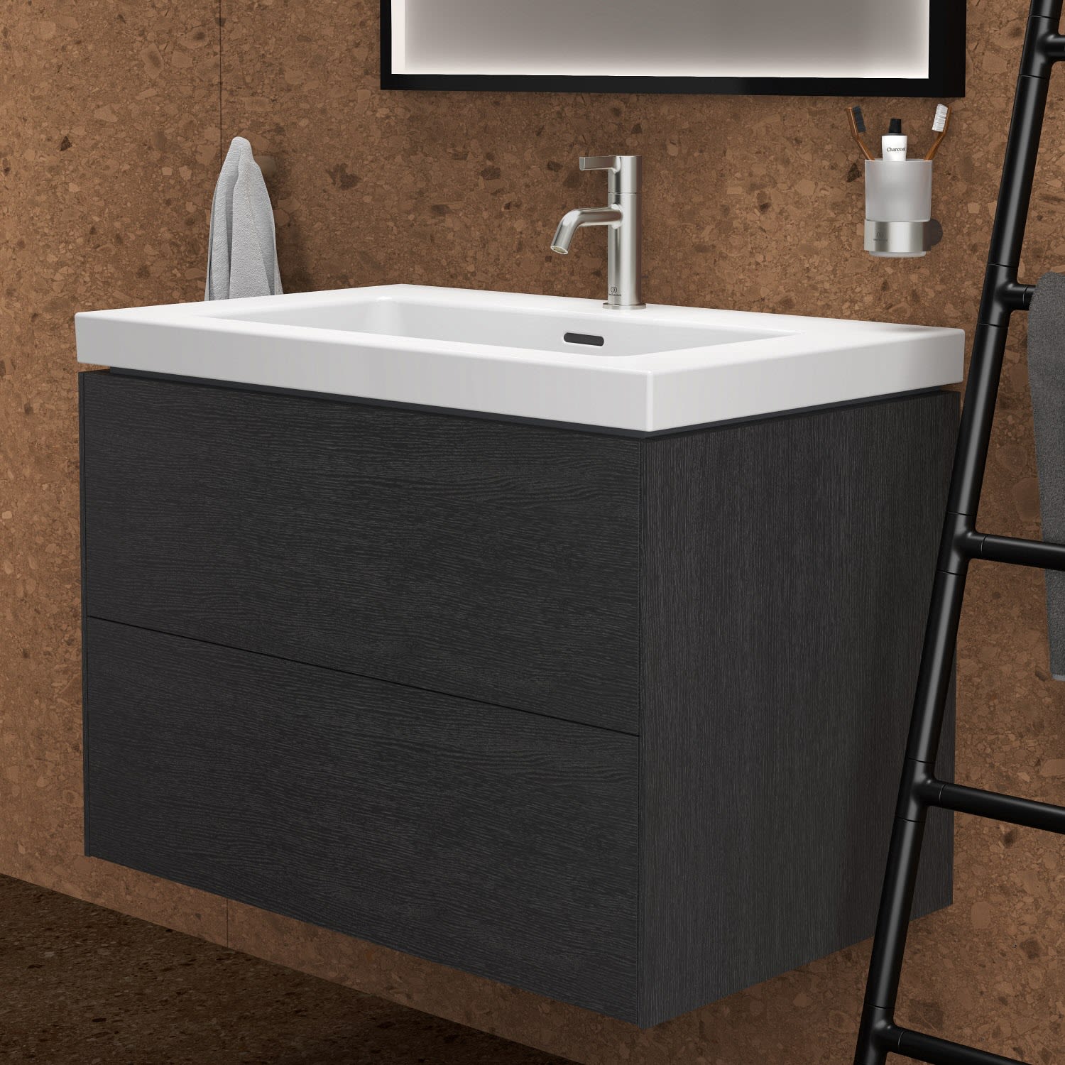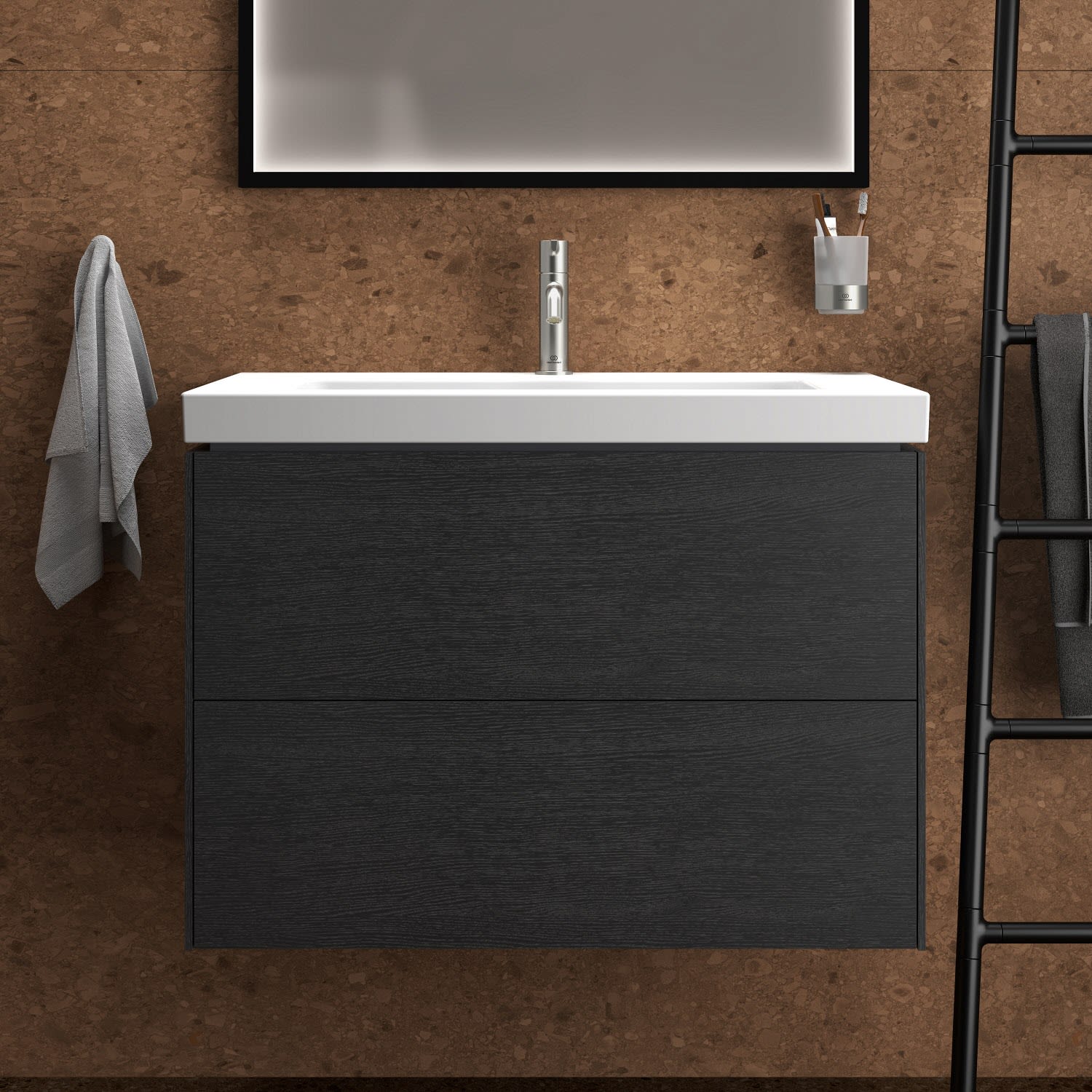 Ideal Standard Badspiegel Conca quadratisch 60 cm mit Beleuchtung und schwarzem Rahmen