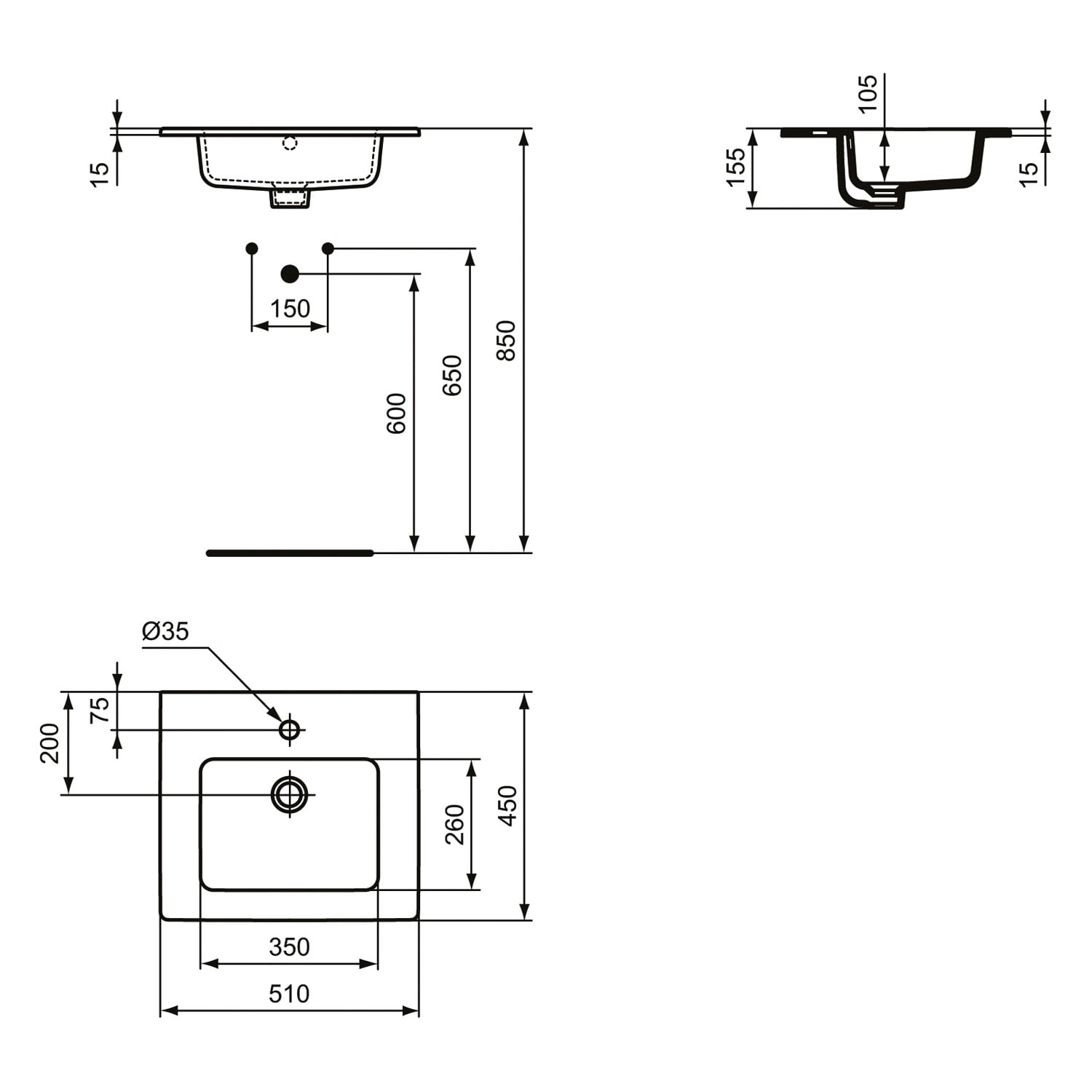 Ideal Standard Eurovit Möbelwaschtisch 1 Hahnloch mit Überlauf 51 x 45 cm