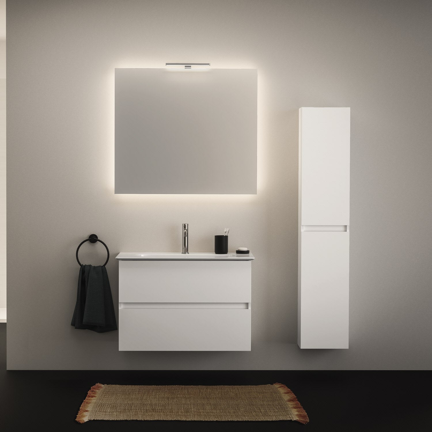 burgbad Junit Waschtischkombination mit Keramik-Waschtisch und LED-Beleuchtung Links 76,5 cm