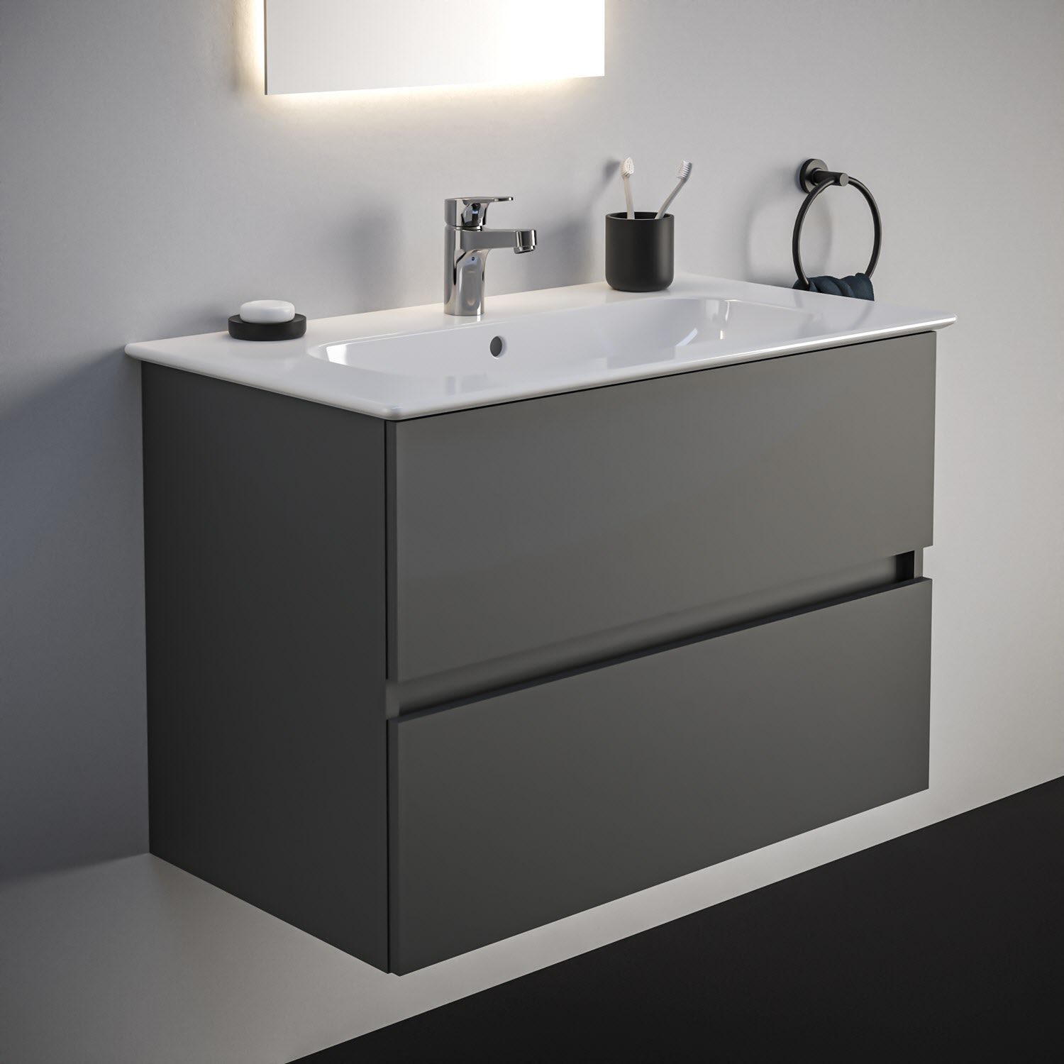 Ideal Standard Eurovit+ Möbelpaket mit Waschtisch 81 cm und Unterschrank 80 cm, 2 Auszüge