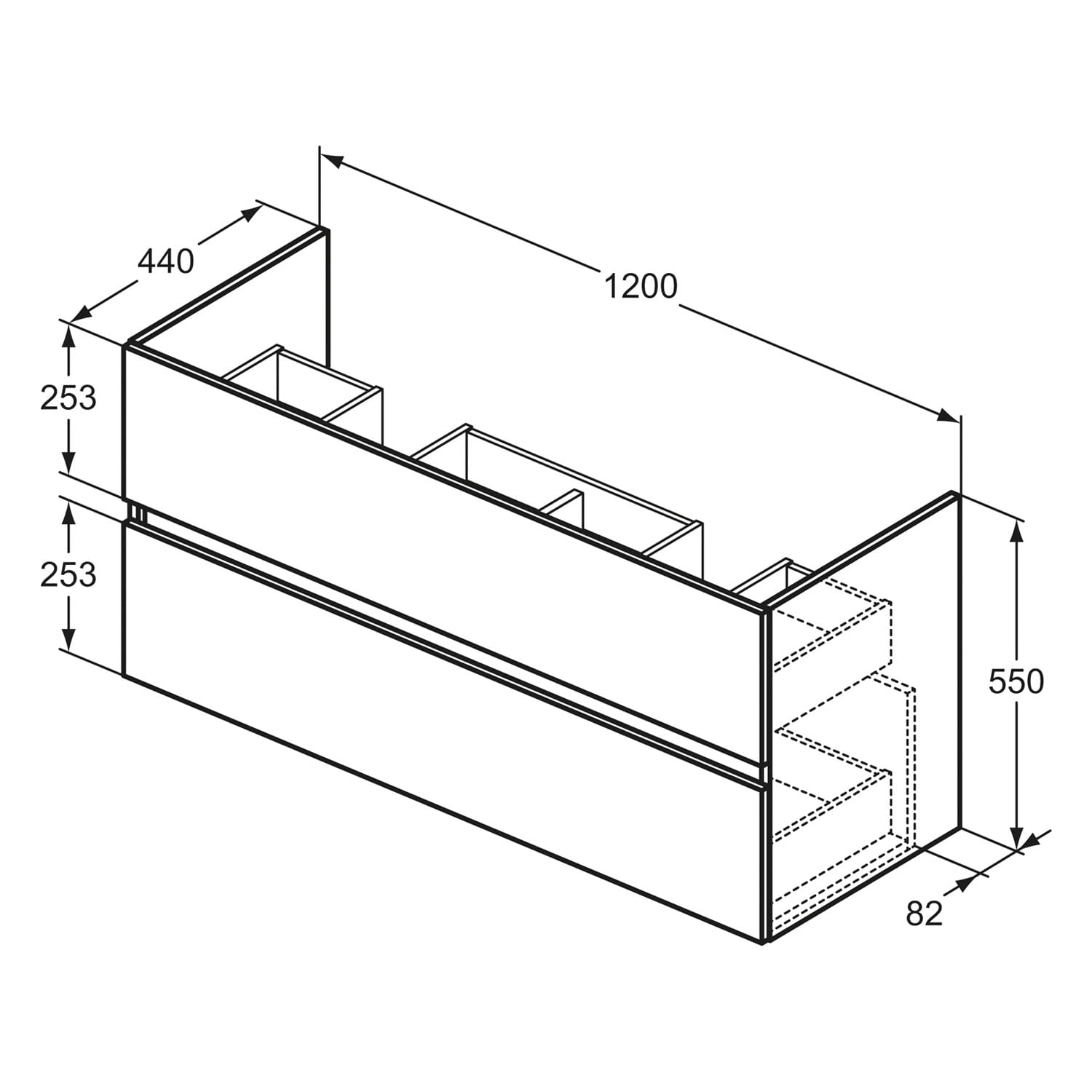 Ideal Standard Eurovit+ Waschtischunterschrank 2 Auszüge 120 x 44 x 55 cm