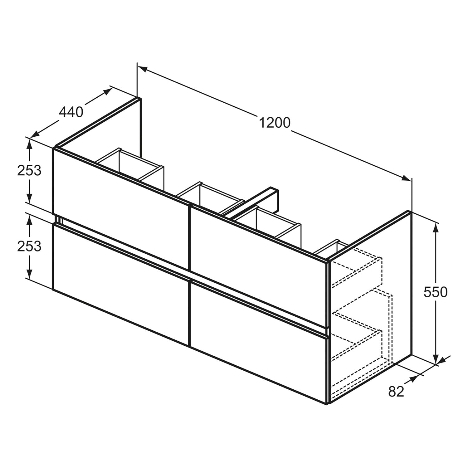 Ideal Standard Eurovit+ Waschtischunterschrank 4 Auszüge 120 x 44 x 55 cm