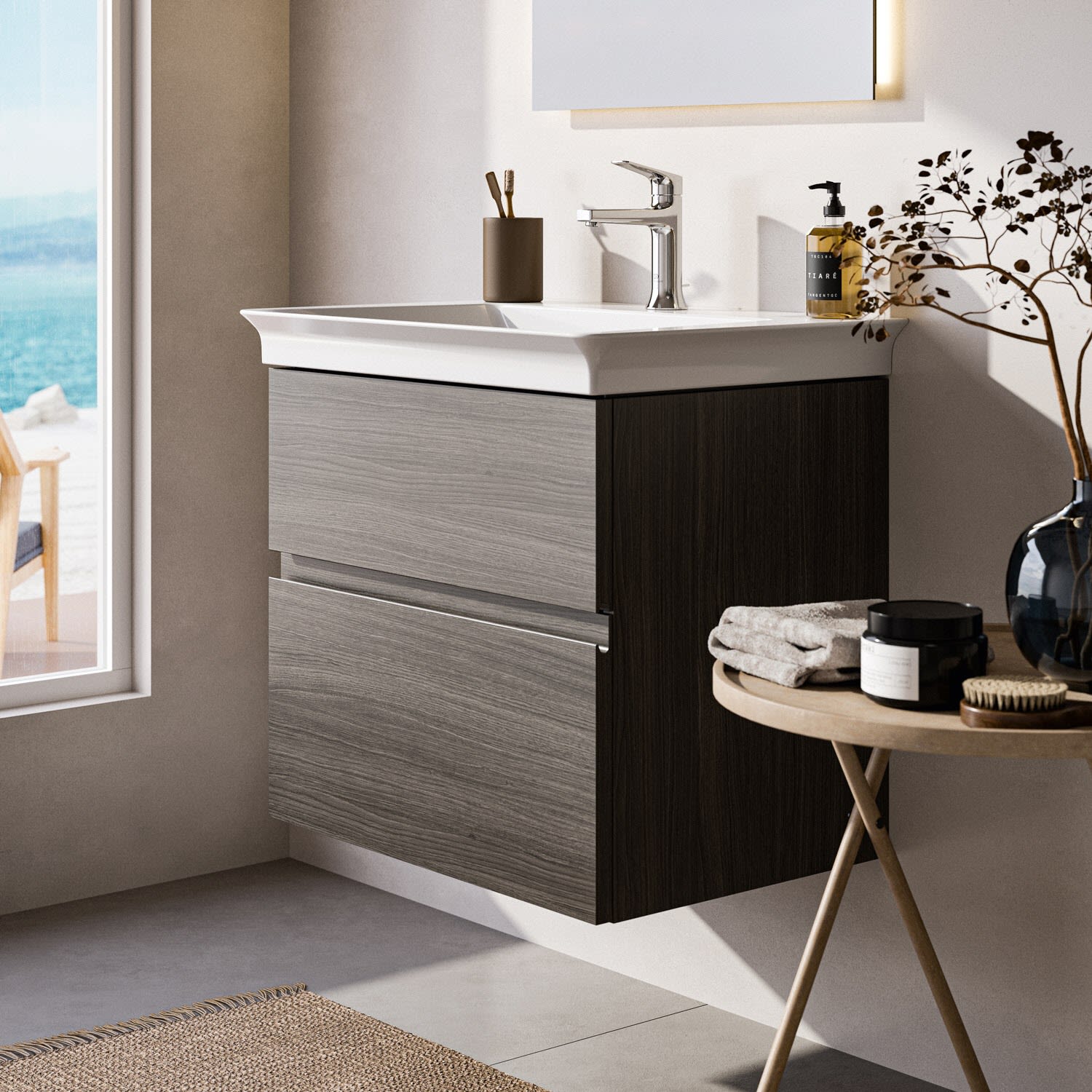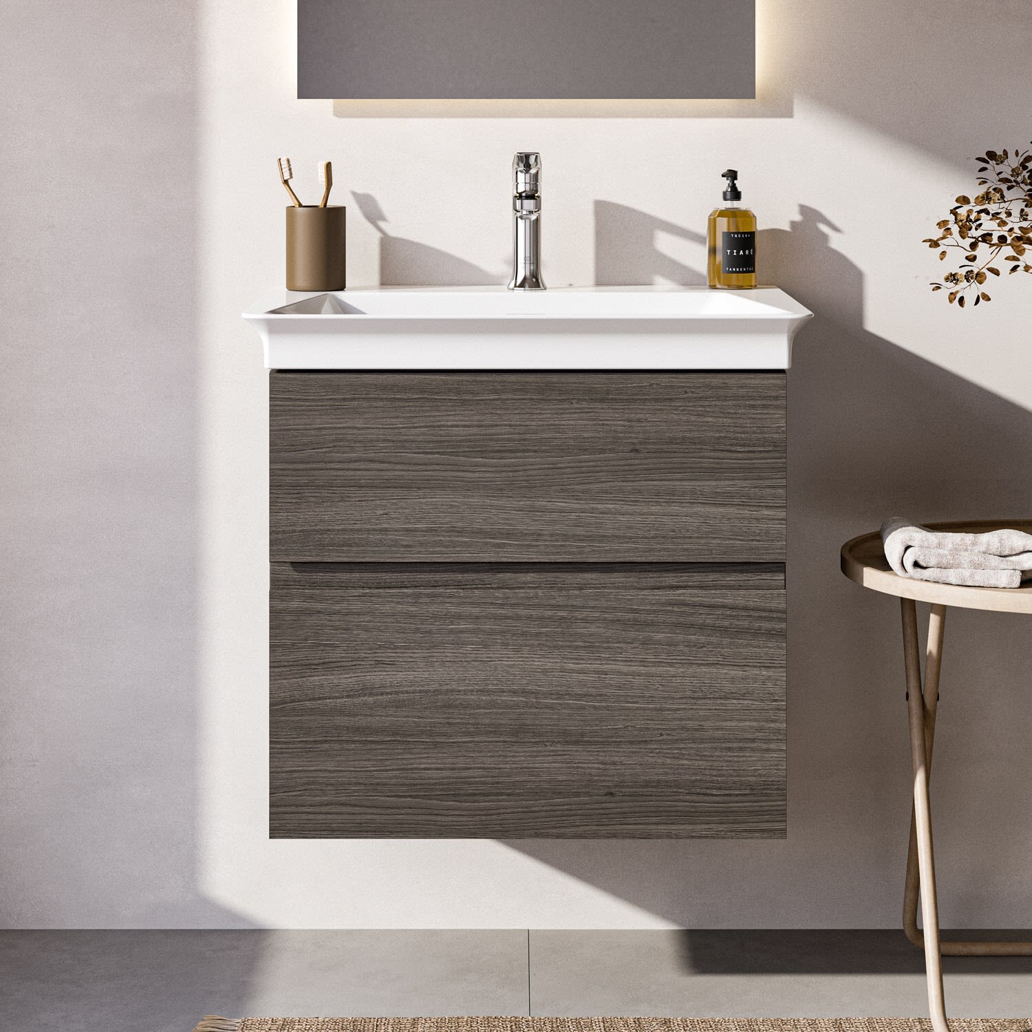 Die Finesse Serie bietet dir Flexibilität, denn der Möbelwaschtischunterschrank ist in drei Tiefen erhältlich. Du findest die perfekte Größe, die deinem Badezimmer und deinen Bedürfnissen entspricht.