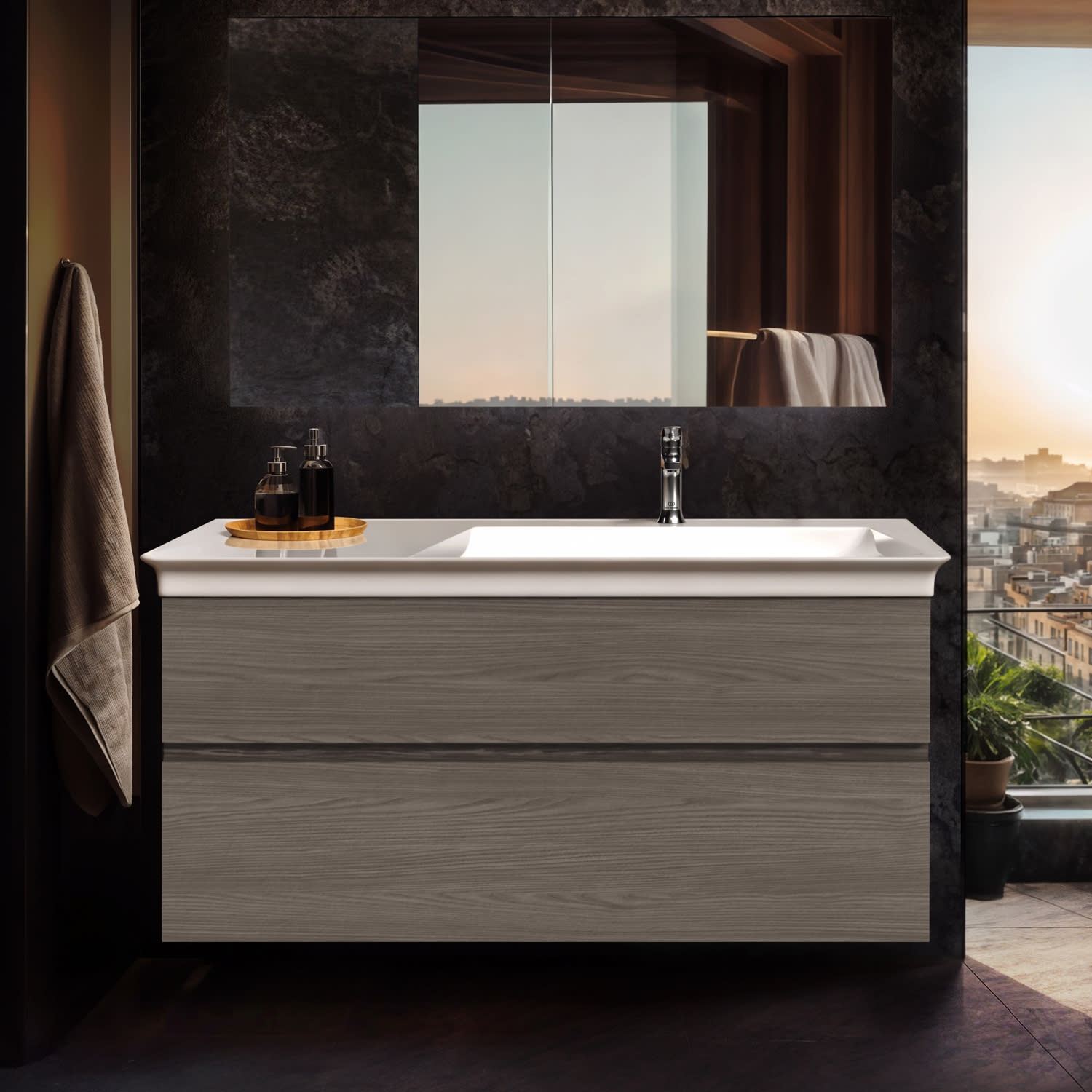 Die Finesse Serie bietet dir Flexibilität, denn der Möbelwaschtischunterschrank ist in drei Tiefen erhältlich. Du findest die perfekte Größe, die deinem Badezimmer und deinen Bedürfnissen entspricht.