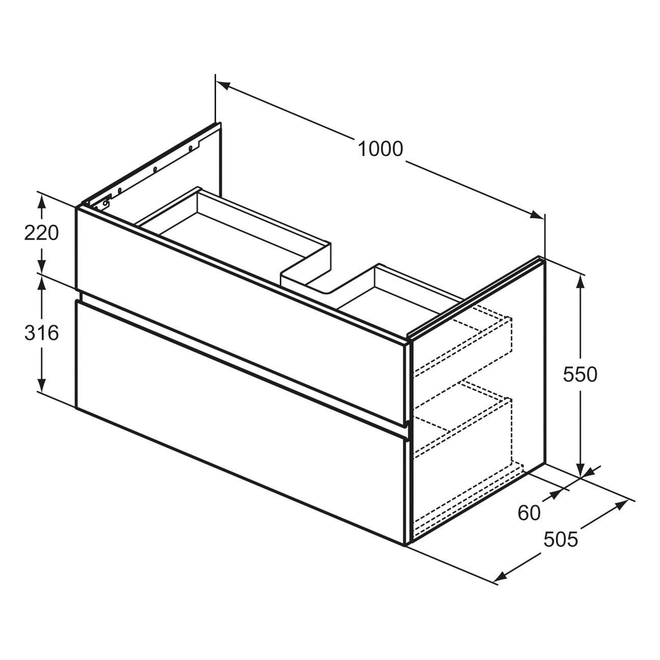 Ideal Standard Finesse Waschtischunterschrank 100 cm mit 2 Auszügen für Möbelwaschtisch