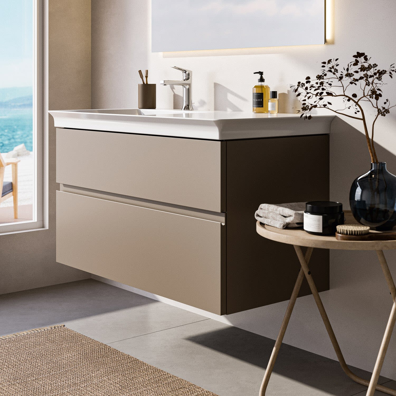 Die Finesse Serie bietet dir Flexibilität, denn der Möbelwaschtischunterschrank ist in drei Tiefen erhältlich. Du findest die perfekte Größe, die deinem Badezimmer und deinen Bedürfnissen entspricht.