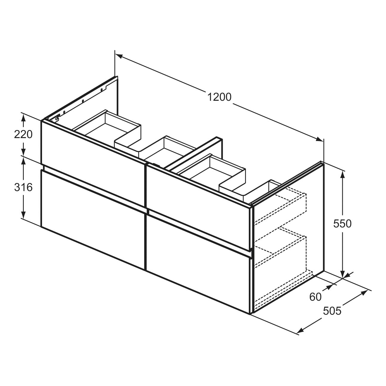 Ideal Standard Finesse Waschtischunterschrank 120 cm mit 4 Auszügen für Doppel-Möbelwaschtisch