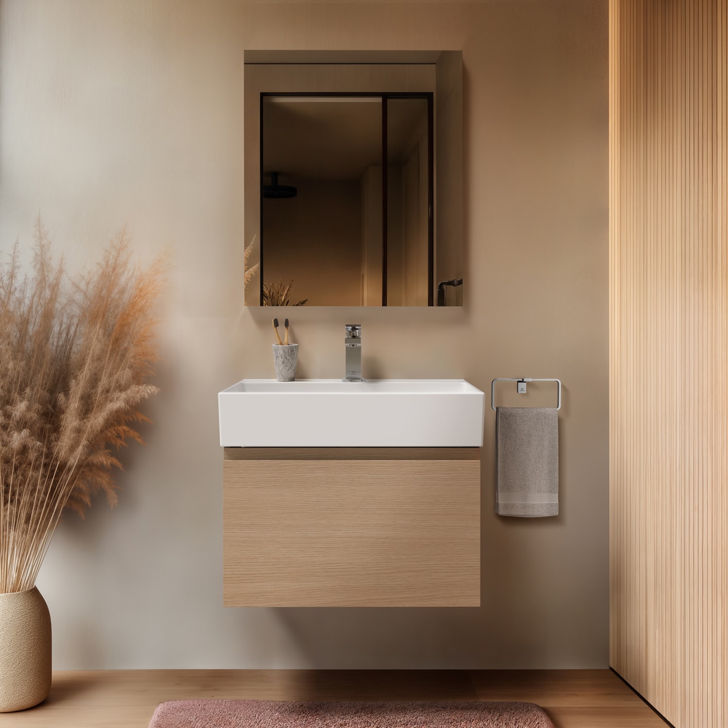 Die Finesse Serie bietet dir Flexibilität, denn der Möbelwaschtischunterschrank ist in drei Tiefen erhältlich. Du findest die perfekte Größe, die deinem Badezimmer und deinen Bedürfnissen entspricht.
