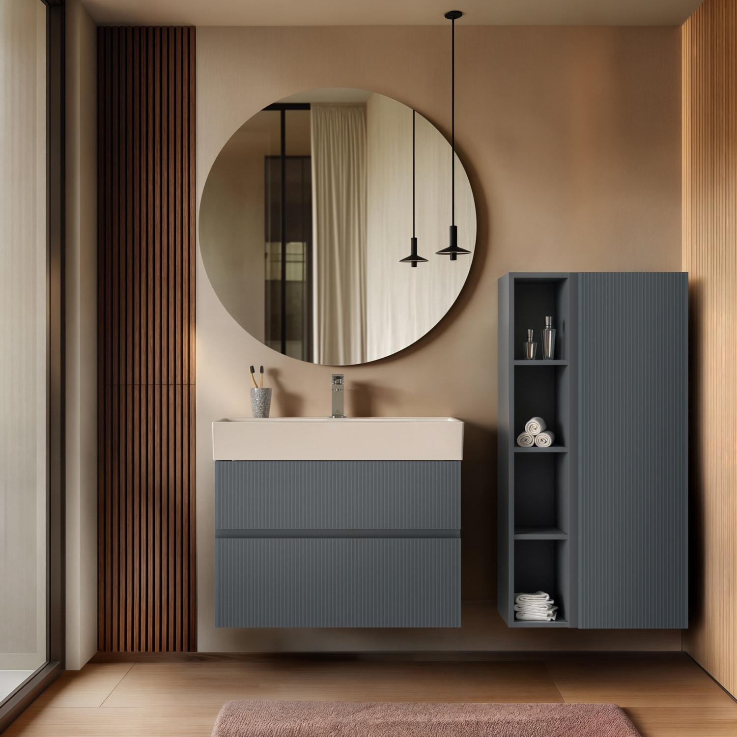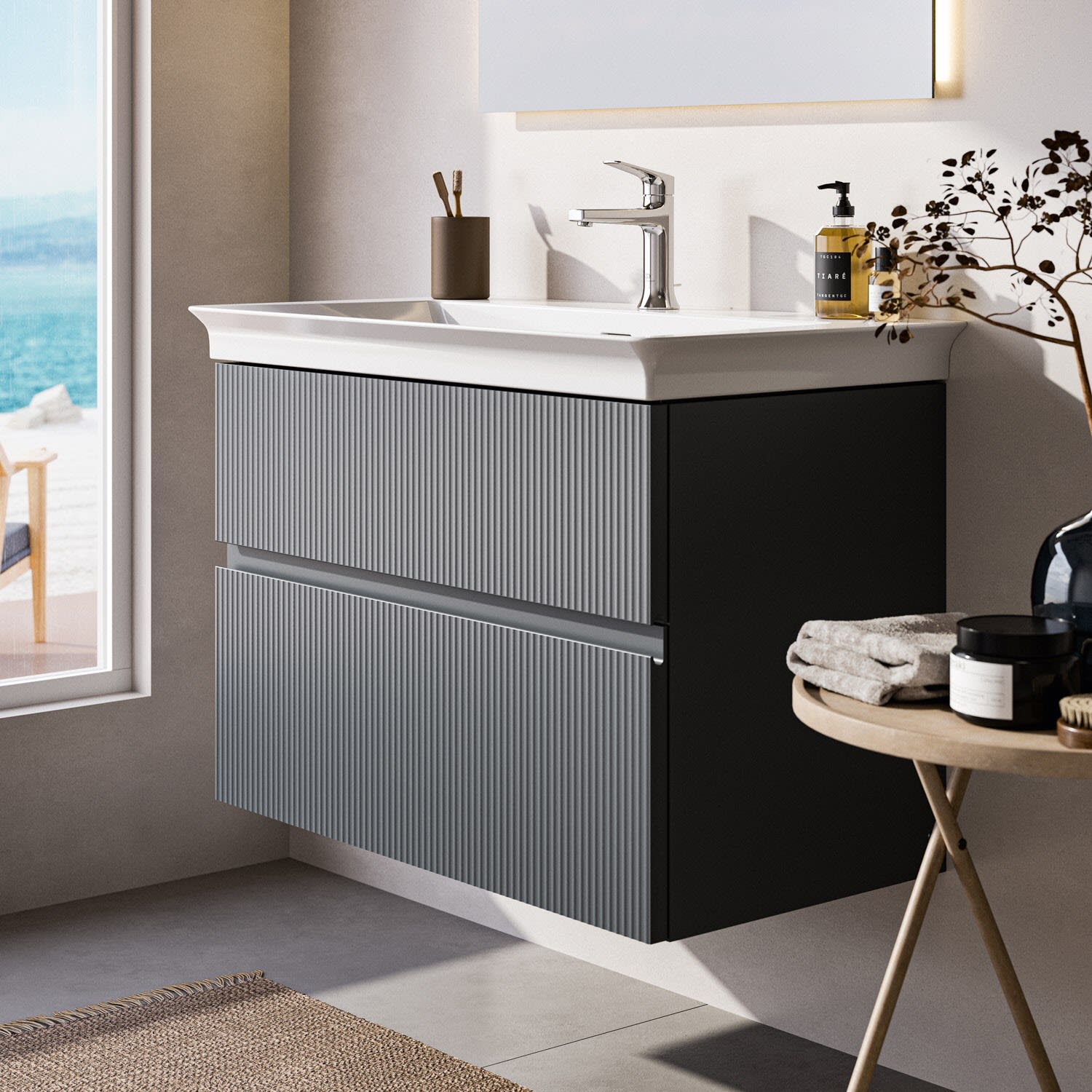 Die Finesse Serie bietet dir Flexibilität, denn der Möbelwaschtischunterschrank ist in drei Tiefen erhältlich. Du findest die perfekte Größe, die deinem Badezimmer und deinen Bedürfnissen entspricht.