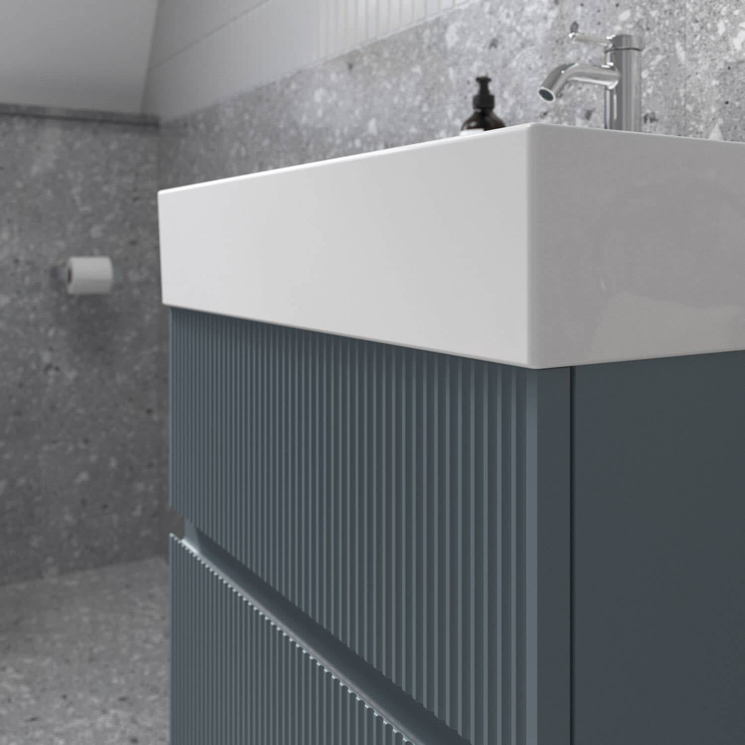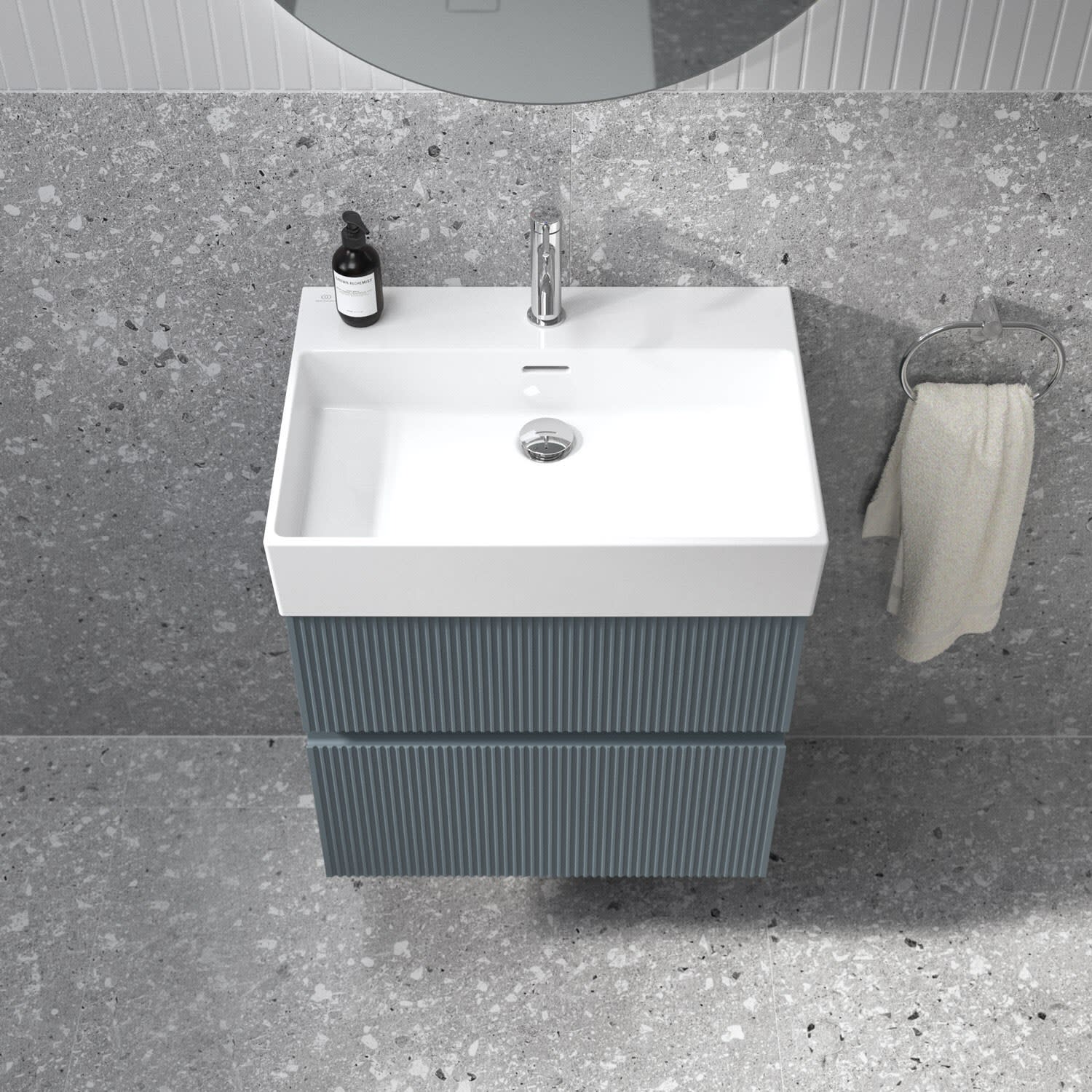 Der Lastani Möbelwaschtischunterschrank von Ideal Standard ist der Inbegriff moderner Raffinesse. Seine schlanken Linien und die dezenten Griffmulden strahlen zeitlose Eleganz aus. Der Unterschrank bietet mit seinen beiden Auszügen ausreichend Stauraum für alle wichtigen Badutensilien. Der Softclose-Mechanismus ermöglicht ein geräuschloses und sanftes Schließen für eine angenehme Nutzung. Ob im hektischen Alltag oder bei einem entspannten Morgenritual – der Softclose-Mechanismus sorgt für Komfort, auf den Sie nie wieder verzichten möchten. Ideal Standard setzt sich für Nachhaltigkeit ein: Das verwendete Holz stammt aus nachhaltigen Quellen. Kombiniert mit dem Lastani Waschtisch der durch sein klares, eckiges Design eine moderne, offene Atmosphäre in jedem Badezimmer schafft. Mit einer Breite von 61,5 cm bietet der Waschtisch viel Raum für Ihre tägliche Pflegeroutine. Das zentrale Hahnloch ermöglicht individuelle Gestaltungsmöglichkeiten, während der geschlitzte Überlauf für ein elegantes Detail sorgt. Gefertigt aus hochwertigem Feinfeuerton überzeugt der Waschtisch nicht nur durch seine zeitlose Ästhetik, sondern auch durch seine langlebige Qualität.