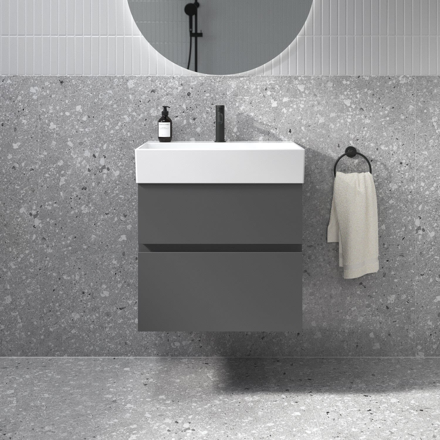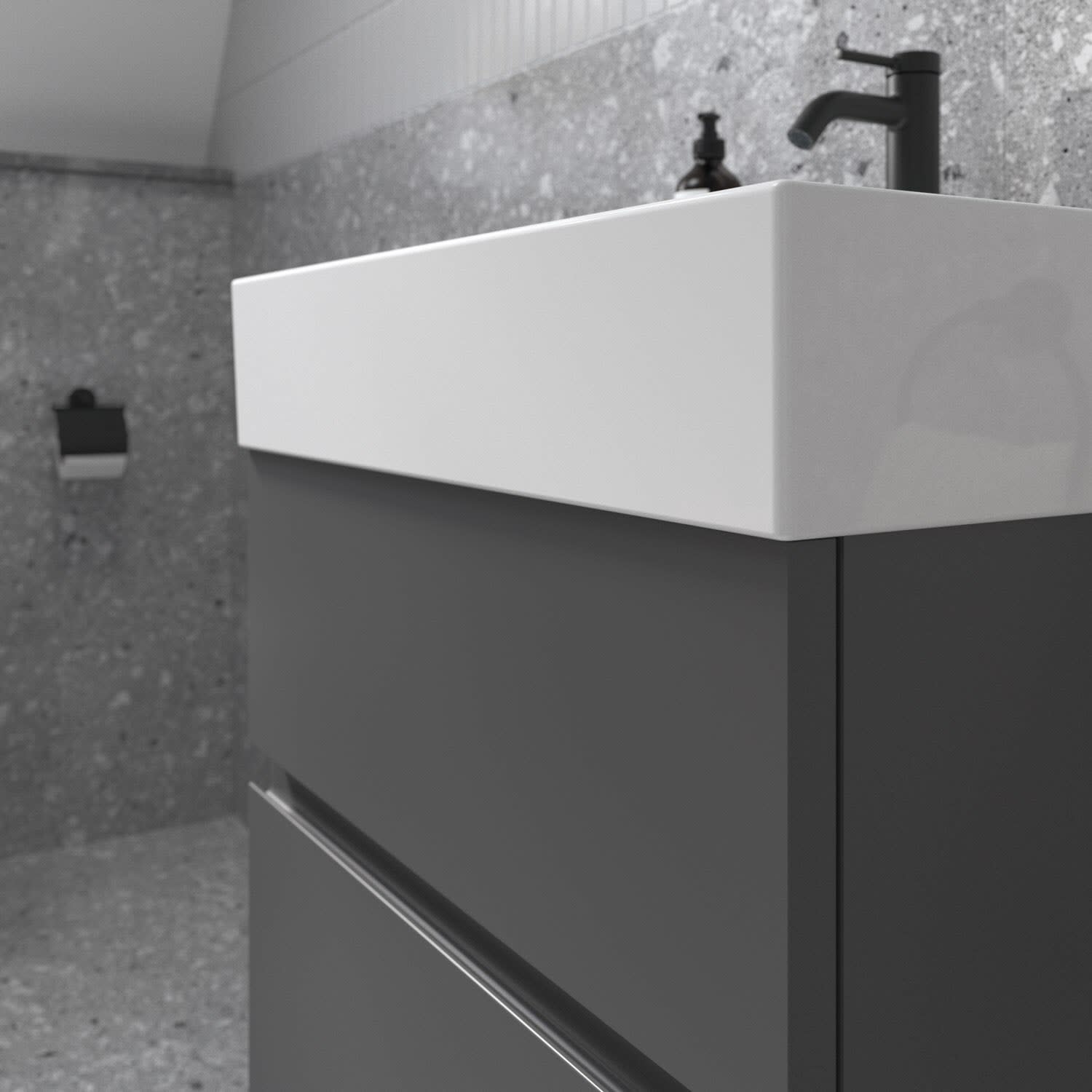 Der Lastani Möbelwaschtischunterschrank von Ideal Standard ist der Inbegriff moderner Raffinesse. Seine schlanken Linien und die dezenten Griffmulden strahlen zeitlose Eleganz aus. Der Unterschrank bietet mit seinen beiden Auszügen ausreichend Stauraum für alle wichtigen Badutensilien. Der Softclose-Mechanismus ermöglicht ein geräuschloses und sanftes Schließen für eine angenehme Nutzung. Ob im hektischen Alltag oder bei einem entspannten Morgenritual – der Softclose-Mechanismus sorgt für Komfort, auf den Sie nie wieder verzichten möchten. Ideal Standard setzt sich für Nachhaltigkeit ein: Das verwendete Holz stammt aus nachhaltigen Quellen. Kombiniert mit dem Lastani Waschtisch der durch sein klares, eckiges Design eine moderne, offene Atmosphäre in jedem Badezimmer schafft. Mit einer Breite von 61,5 cm bietet der Waschtisch viel Raum für Ihre tägliche Pflegeroutine. Das zentrale Hahnloch ermöglicht individuelle Gestaltungsmöglichkeiten, während der geschlitzte Überlauf für ein elegantes Detail sorgt. Gefertigt aus hochwertigem Feinfeuerton überzeugt der Waschtisch nicht nur durch seine zeitlose Ästhetik, sondern auch durch seine langlebige Qualität.