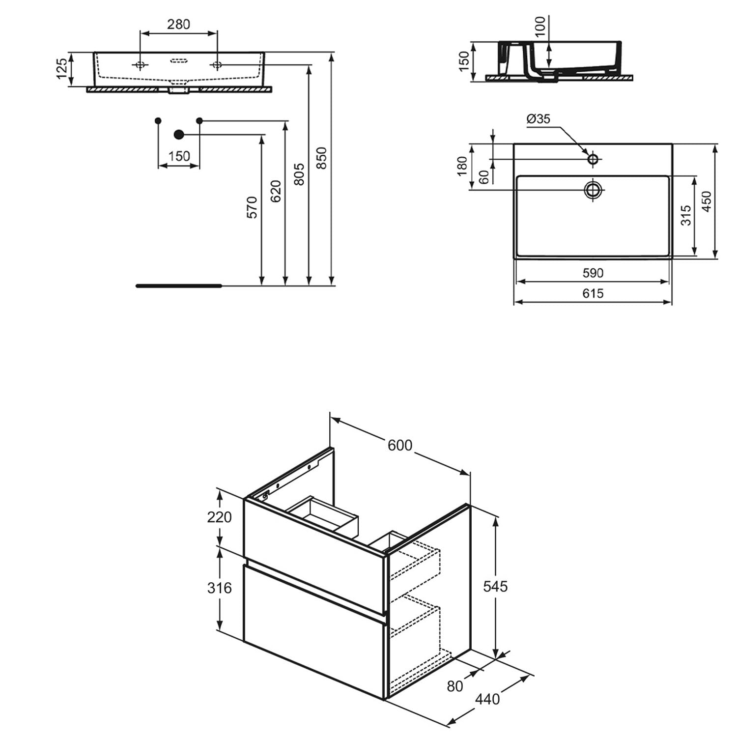 Ideal Standard Lastani Waschtisch mit Unterschrank 61,5 cm
