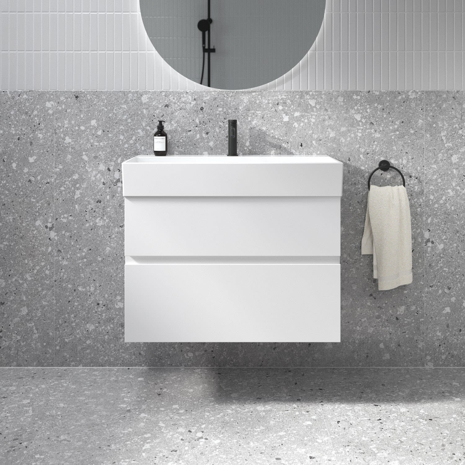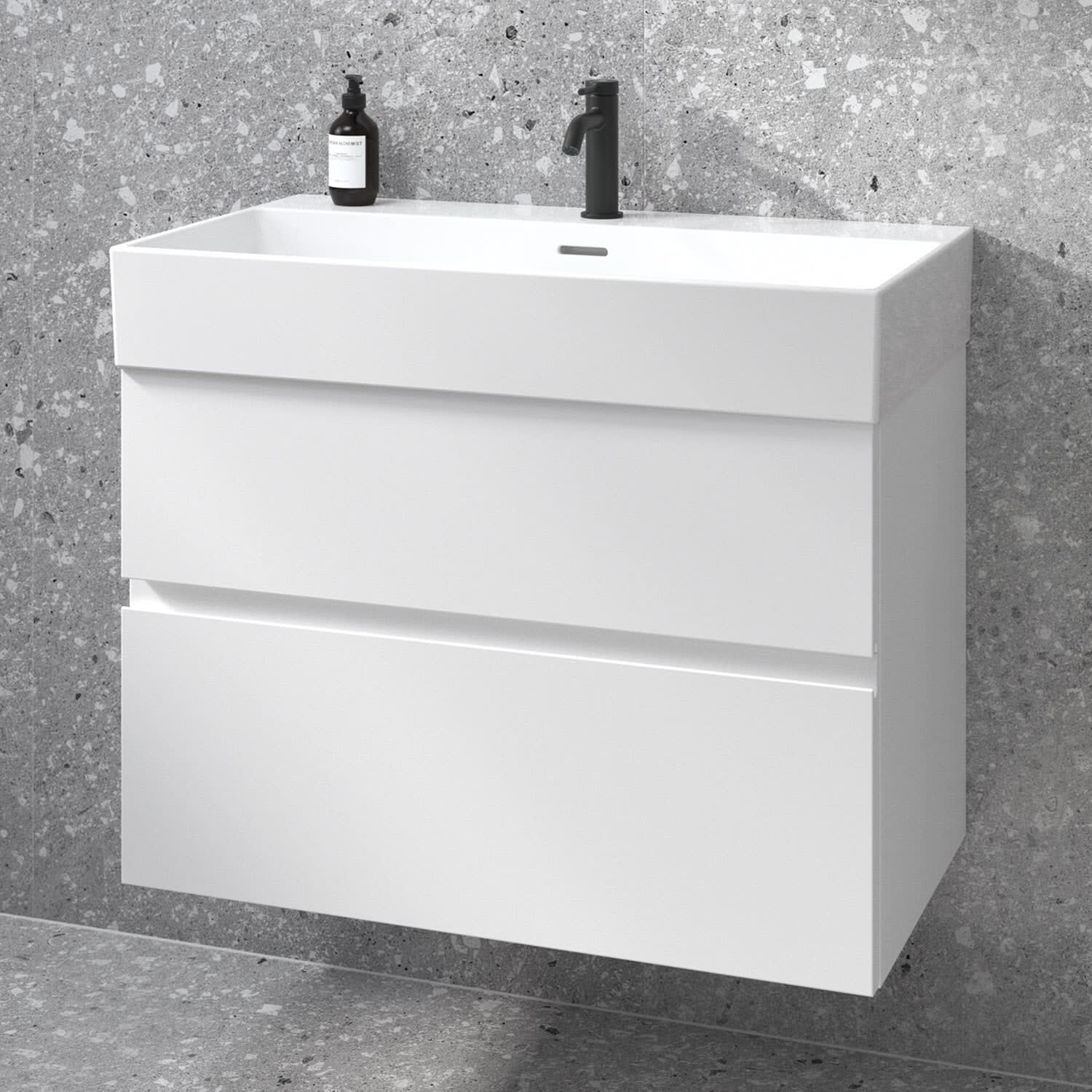 Der Lastani Möbelwaschtischunterschrank von Ideal Standard ist der Inbegriff moderner Raffinesse. Seine schlanken Linien und die dezenten Griffmulden strahlen zeitlose Eleganz aus. Der Unterschrank bietet mit seinen beiden Auszügen ausreichend Stauraum für alle wichtigen Badutensilien. Der Softclose-Mechanismus ermöglicht ein geräuschloses und sanftes Schließen für eine angenehme Nutzung. Ob im hektischen Alltag oder bei einem entspannten Morgenritual – der Softclose-Mechanismus sorgt für Komfort, auf den Sie nie wieder verzichten möchten. Ideal Standard setzt sich für Nachhaltigkeit ein: Das verwendete Holz stammt aus nachhaltigen Quellen. Kombiniert mit dem Lastani Waschtisch der durch sein klares, eckiges Design eine moderne, offene Atmosphäre in jedem Badezimmer schafft. Mit einer Breite von 81,5 cm bietet der Waschtisch viel Raum für Ihre tägliche Pflegeroutine. Das zentrale Hahnloch ermöglicht individuelle Gestaltungsmöglichkeiten, während der geschlitzte Überlauf für ein elegantes Detail sorgt. Gefertigt aus hochwertigem Feinfeuerton überzeugt der Waschtisch nicht nur durch seine zeitlose Ästhetik, sondern auch durch seine langlebige Qualität.