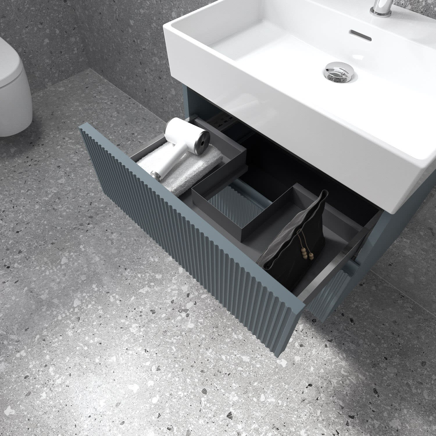 Der Lastani Möbelwaschtischunterschrank von Ideal Standard ist der Inbegriff moderner Raffinesse. Seine schlanken Linien und die dezenten Griffmulden strahlen zeitlose Eleganz aus. Der Unterschrank bietet mit seinen beiden Auszügen ausreichend Stauraum für alle wichtigen Badutensilien. Der Softclose-Mechanismus ermöglicht ein geräuschloses und sanftes Schließen. Ideal Standard setzt sich für Nachhaltigkeit ein: Das verwendete Holz stammt aus nachhaltigen Quellen.