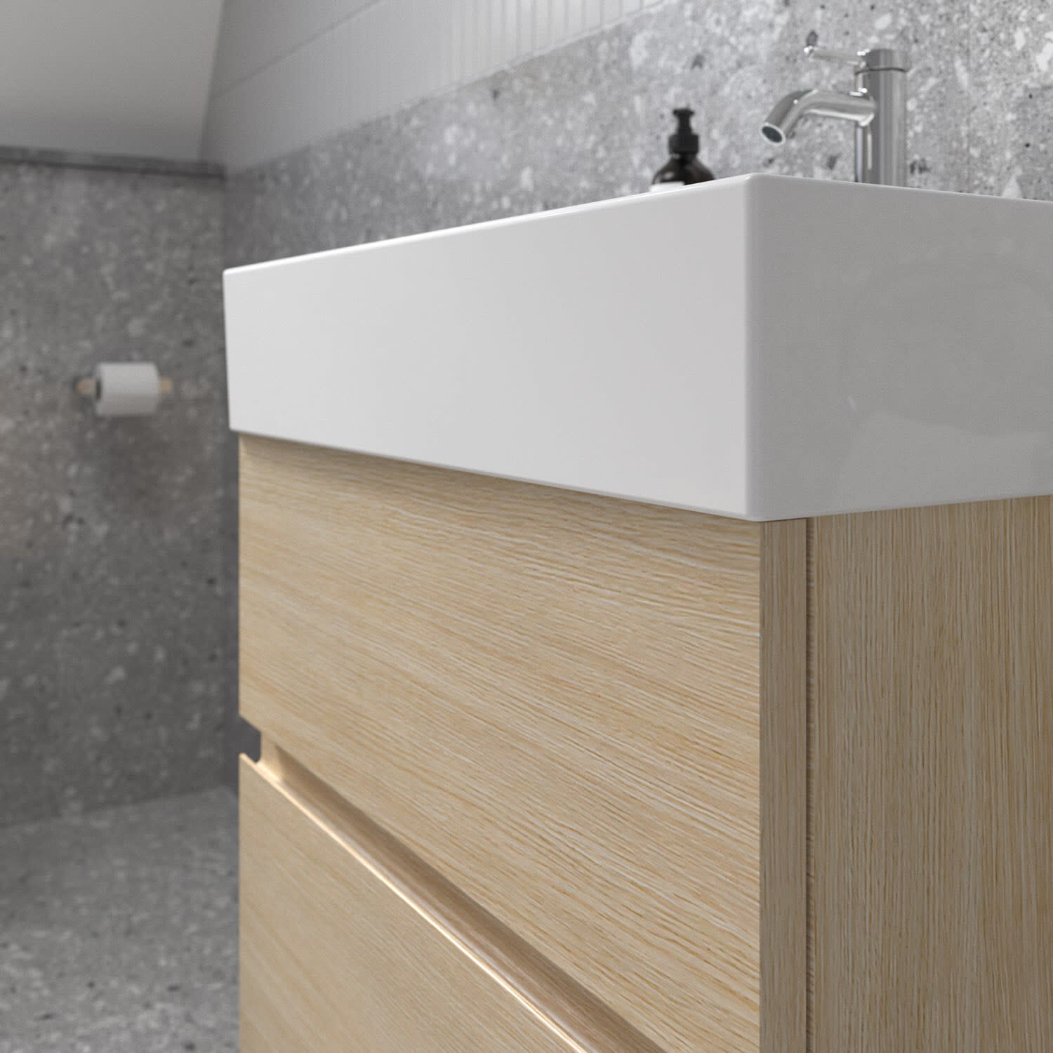 Der Lastani Möbelwaschtischunterschrank von Ideal Standard ist der Inbegriff moderner Raffinesse. Seine schlanken Linien und die dezenten Griffmulden strahlen zeitlose Eleganz aus. Der Unterschrank bietet mit seinen beiden Auszügen ausreichend Stauraum für alle wichtigen Badutensilien. Der Softclose-Mechanismus ermöglicht ein geräuschloses und sanftes Schließen. Ideal Standard setzt sich für Nachhaltigkeit ein: Das verwendete Holz stammt aus nachhaltigen Quellen.