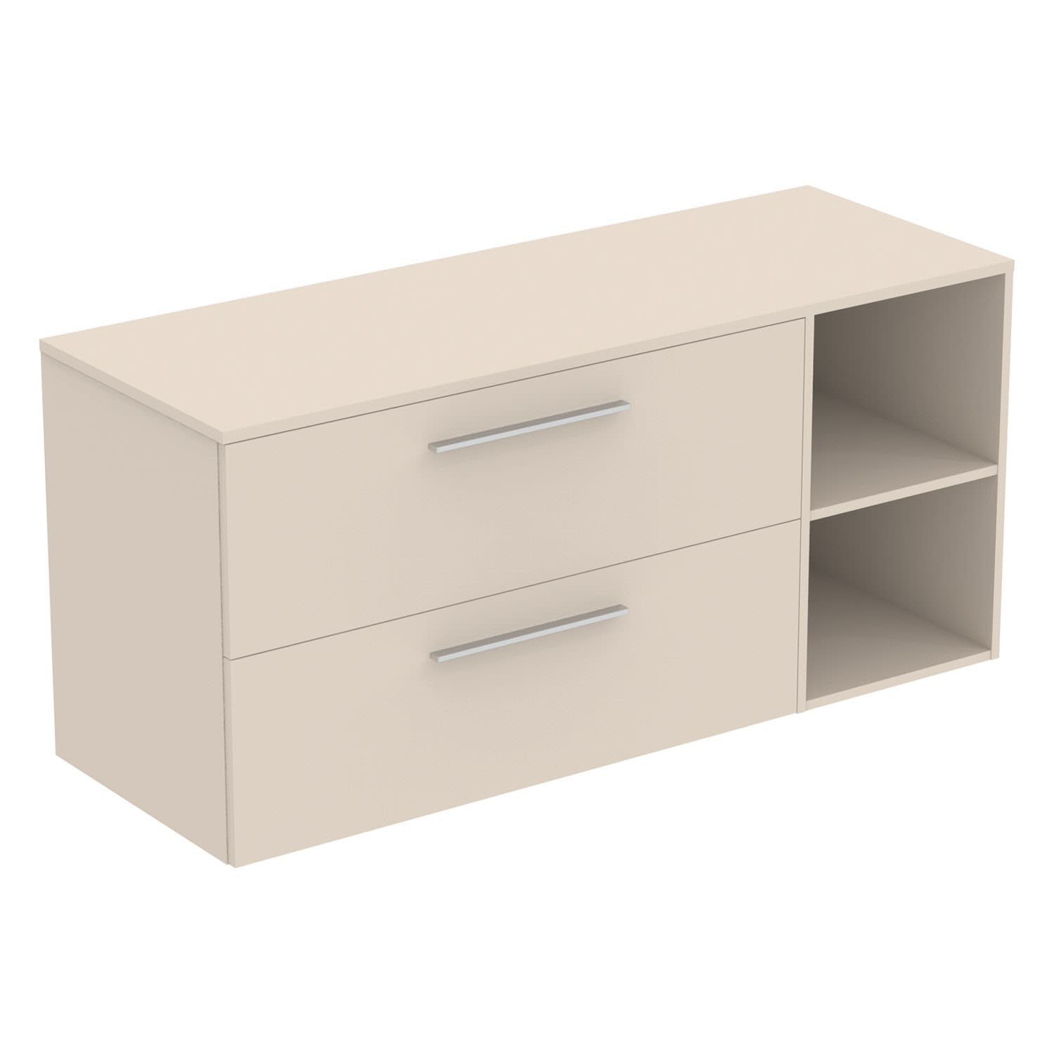 Das i.life B Möbel-Set von Ideal Standard ist die perfekte Wahl für ein stilvolles und funktionales Badezimmer. Das Set besteht aus einem Möbelwaschtischunterschrank mit zwei Auszügen, Möbelgriffen, einem Seitenelement mit zwei Fächern und einer Waschtischplatte.